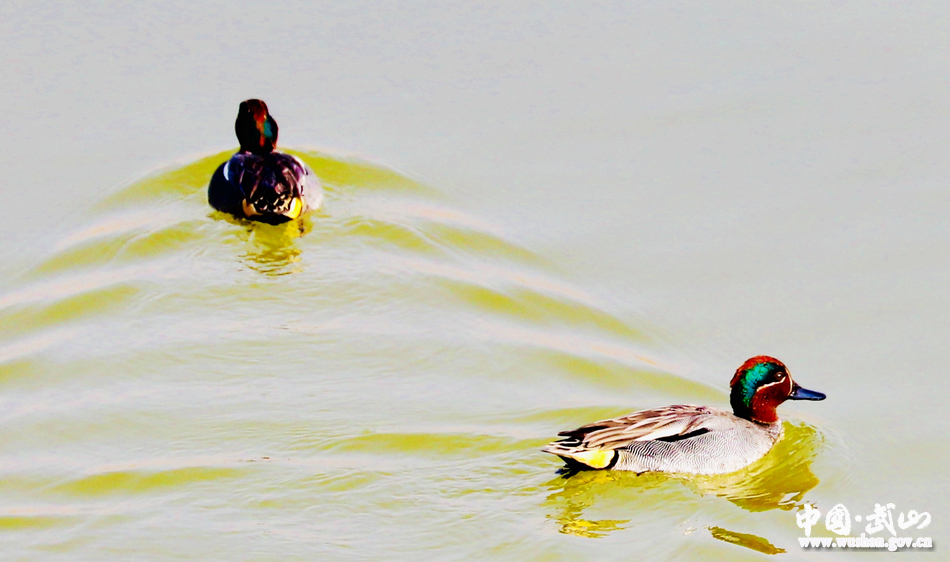 如今每年都會(huì)有大批的白鷺、白骨頂雞、赤麻鴨、赤膀鴨、斑嘴鴨、白眼潛鴨、林鷸、鹮嘴鷸等鳥類來(lái)這里遷徙中轉(zhuǎn)和繁衍棲息,鴛鴦湖公園內(nèi)外、村邊的溪流旁邊鳥兒們自由自在地飛翔、嬉水、覓食、歌唱……一個(gè)個(gè)靈巧的身影,一對(duì)對(duì)舞動(dòng)的翅膀,一聲聲吟唱的啾鳴,打破了水面舒緩的幽靜,展現(xiàn)著人與自然和諧共生的美麗風(fēng)景。(攝影/薛東霞)
