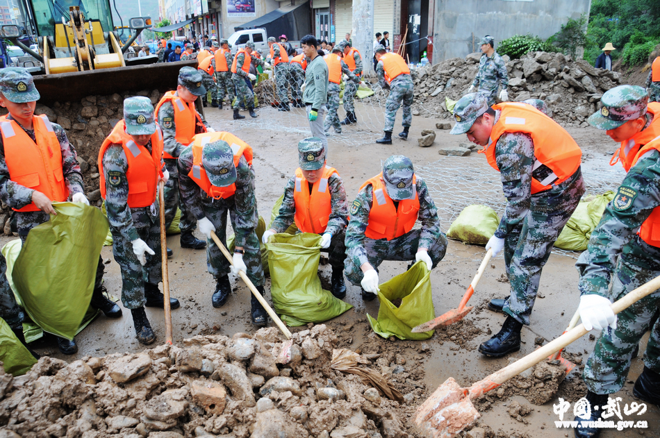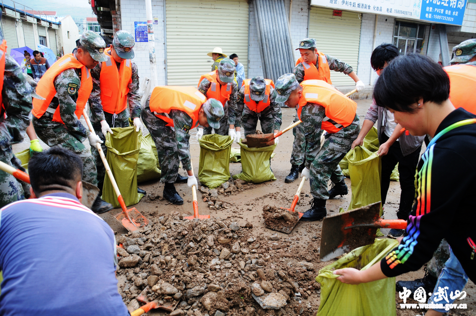 7月1日18時至7月2日10時,武山縣出現(xiàn)強降雨天氣過程,局部最大降水達(dá)124.4mm,加之上游下泄洪水劇增,縣內(nèi)渭河及其支流出現(xiàn)50年未遇特大洪水,造成全縣15個鄉(xiāng)鎮(zhèn)不同程度受災(zāi)。暴洪災(zāi)害發(fā)生后,廣大官兵火速馳援一線搶險救災(zāi),災(zāi)情現(xiàn)場官兵們充分發(fā)揚不怕疲勞、不畏艱險、連續(xù)作戰(zhàn)的頑強作風(fēng),發(fā)揮了主力軍和突擊隊的作用,承擔(dān)了大量急難險重任務(wù),積極搶修水毀道路橋梁、河堤、公路等基礎(chǔ)設(shè)施,有效遏制了災(zāi)情繼續(xù)擴(kuò)大,在搶險救災(zāi)中做出了積極貢獻(xiàn),保護(hù)了人民群眾生命財產(chǎn)安全。