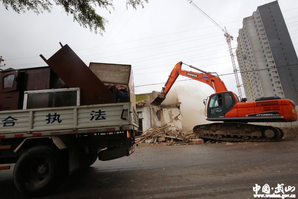 國道310線武山段升級改造項目和武山縣杜塄村棚戶區(qū)改造項目是縣委、縣政府為加快全縣城市建設(shè)、改善城區(qū)交通環(huán)境、有效解決困難群眾住房問題而實施的重點民生工程。為保障兩個項目順利實施,8月2日上午,武山縣組織縣國土局、建設(shè)局、交通局、安監(jiān)局、執(zhí)法局、房管局、作風(fēng)辦、交警隊、消防隊、公證處、供電公司和城關(guān)鎮(zhèn)等相關(guān)單位,依法對項目實施范圍內(nèi)的原城關(guān)供銷合作社杜家塄門市部房屋進(jìn)行了強(qiáng)制拆除。