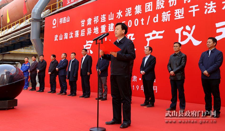 馬勤學在致辭中說,今天是50萬武山人民夢想成真的日子!我們懷著無比喜悅、無比激動的心情,在這里隆重而簡樸的舉行甘肅祁連山水泥集團股份有限公司武山淘汰落后異地重建4500t/d新型干法水泥生產(chǎn)線項目建成點火投產(chǎn)儀式,這是武山縣經(jīng)濟發(fā)展中的一件大事、喜事、好事。近年來,在市委、市政府的堅強領(lǐng)導下,武山縣全面貫徹習近平總書記視察甘肅重要講話和“八個著力”重要指示精神,按照綠色可持續(xù)和高質(zhì)量發(fā)展的要求,大力實施項目帶動戰(zhàn)略,一批符合產(chǎn)業(yè)發(fā)展的重大建設(shè)項目和重點招商引資項目相繼落地武山,全縣經(jīng)濟社會發(fā)展取得了明顯成效。下一步,武山縣將認真貫徹落實好市委、市政府的各項決策部署,積極做好服務(wù)保障,不斷優(yōu)化發(fā)展環(huán)境,繼續(xù)強力推進全縣重點項目建設(shè)和工業(yè)經(jīng)濟發(fā)展,不斷增強縣域經(jīng)濟發(fā)展實力,為實現(xiàn)工業(yè)強縣注入更加強勁的動能。