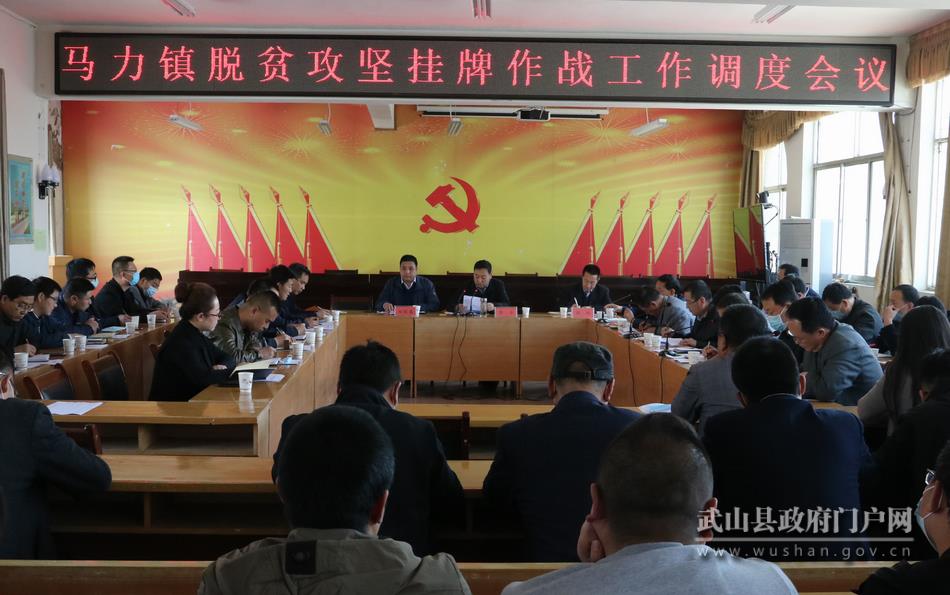 為貫徹落實(shí)各級關(guān)于掛牌作戰(zhàn)的部署要求,明確掛牌作戰(zhàn)的目標(biāo)任務(wù),3月23日,武山縣馬力鎮(zhèn)組織召開脫貧攻堅(jiān)掛牌作戰(zhàn)工作調(diào)度會(huì),傳達(dá)學(xué)習(xí)中央和省、市、縣脫貧攻堅(jiān)相關(guān)會(huì)議精神,安排部署全鎮(zhèn)脫貧攻堅(jiān)掛牌作戰(zhàn)工作。