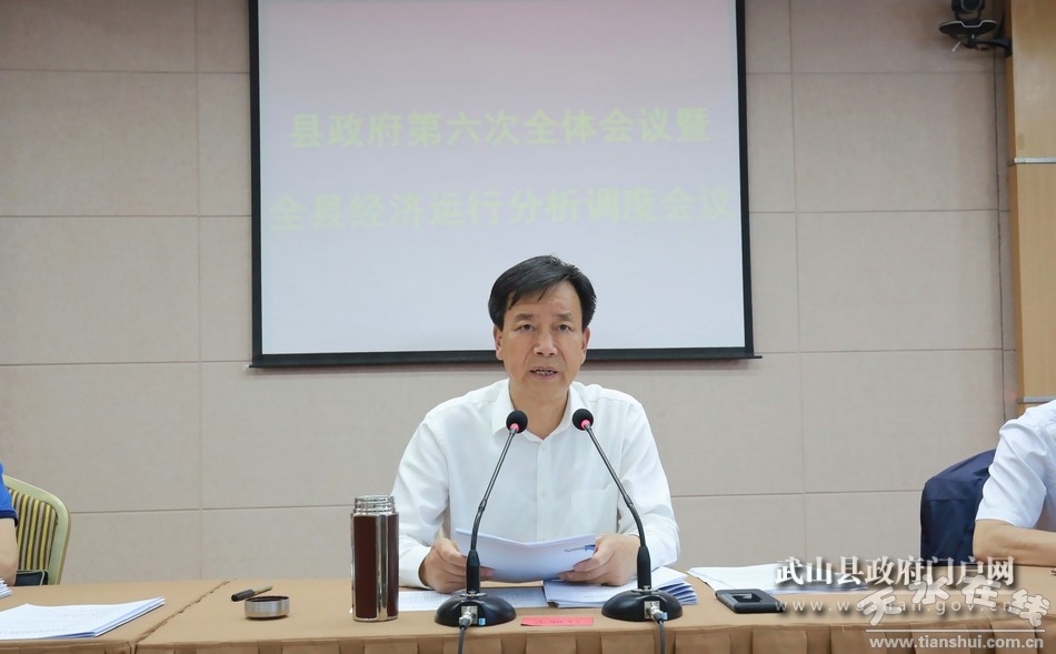 6月19日,武山縣委副書記、縣長(zhǎng)馬勤學(xué)主持召開縣政府第六次全體會(huì)議暨經(jīng)濟(jì)運(yùn)行分析調(diào)度會(huì)議,傳達(dá)學(xué)習(xí)全國(guó)“兩會(huì)”和省政府第七次全體會(huì)議、市政府第八次全體會(huì)議暨全市經(jīng)濟(jì)運(yùn)行分析會(huì)和城市規(guī)劃區(qū)違法建筑專項(xiàng)整治工作推進(jìn)會(huì)議精神,安排部署我縣貫徹落實(shí)工作,動(dòng)員政府系統(tǒng)各級(jí)各部門進(jìn)一步振奮精神,明確責(zé)任,抓主抓重,實(shí)干苦干,確保今年政府各項(xiàng)工作任務(wù)全面完成。