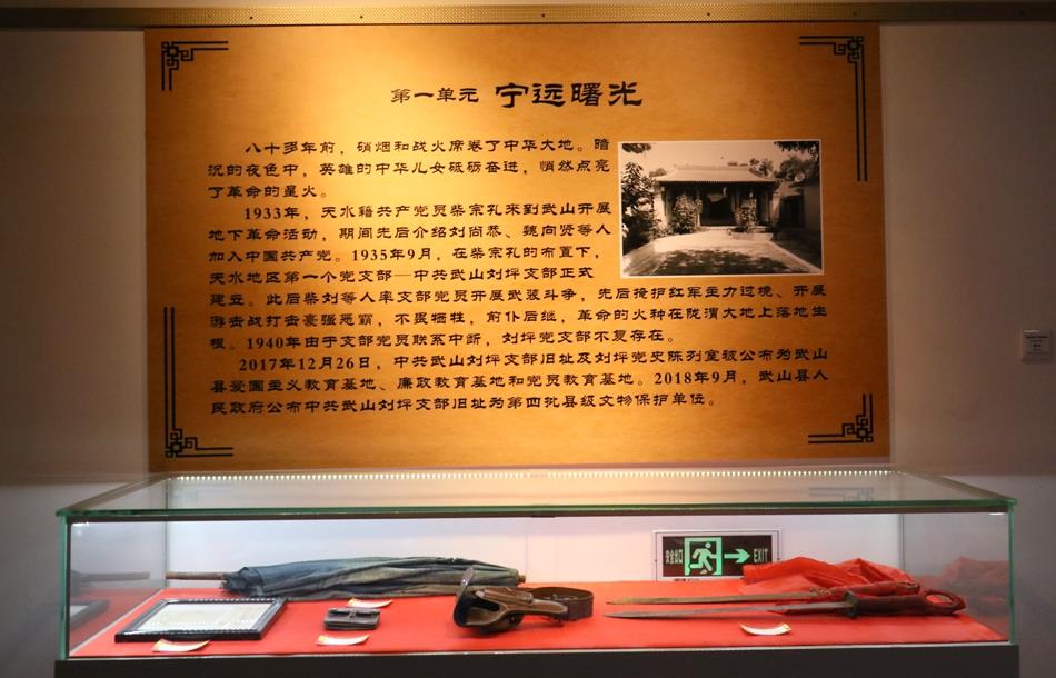 1936年10月8日,中國(guó)工農(nóng)紅軍所屬右路縱隊(duì)(紅六軍)與左路縱隊(duì)(總指揮部、紅二軍、紅三十二軍)在禮縣固城會(huì)合北進(jìn),左路縱隊(duì)在賀龍、任弼時(shí)率領(lǐng)下,翻越禮縣分水嶺進(jìn)入武山,沿謝家莊、雙碌、包家莊、李子溝、馬皇寺、中壩到達(dá)溫泉柏家山一帶宿營(yíng)。紅軍所到之處,張貼“紅軍北上是抗日反蔣”“紅軍不拿群眾一針一線”等標(biāo)語(yǔ)。在縣政府大門上還寫(xiě)著“斧頭砍開(kāi)新世界,鐮刀割斷舊乾坤”的對(duì)聯(lián),在縣、區(qū)蘇維埃政府門上插著鐮刀錘子的紅旗,并利用各種方式,宣傳反蔣抗日救國(guó)的革命道理,組織開(kāi)展了轟轟烈烈的擴(kuò)紅、籌糧、剿匪、反霸斗爭(zhēng)。紅軍給群眾留下了石印馬克思像、銅碗、銅壺、瓷盤(pán)等許多紀(jì)念品,幾十年來(lái)都被珍藏。這些珍貴的遺物,作為紅軍的革命精神,至今激勵(lì)著全縣人民開(kāi)拓前進(jìn)。