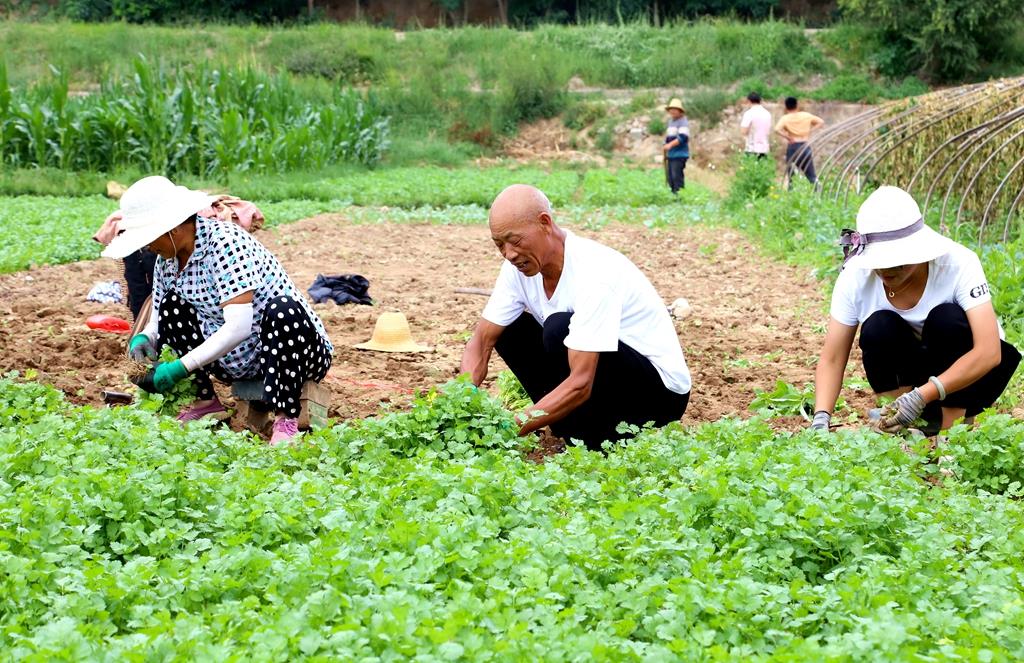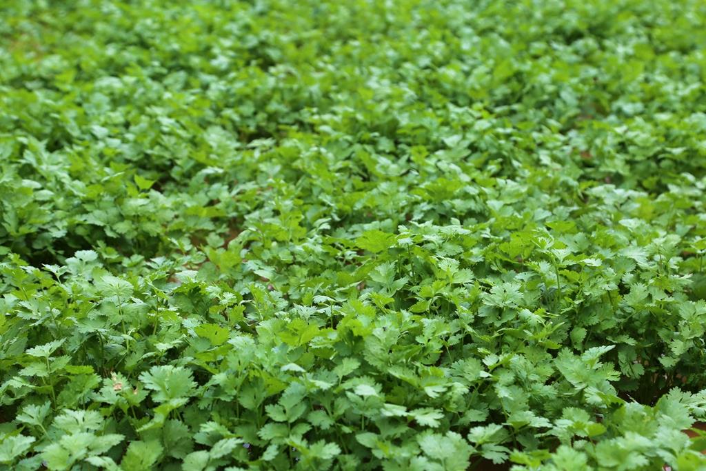 同樣豐收的還有香菜。雖然香菜產(chǎn)量低,但是價格不菲,每斤4-5元,倒茬種植見效快,群眾種植積極性高。