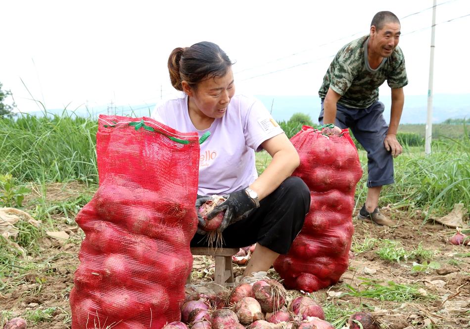 在洛門鎮(zhèn)劉坪村的地頭,剛采挖出來的洋蔥已被商販預(yù)定,價格每斤0.7-0.8元。由于產(chǎn)量高、收益好,菜農(nóng)們個個喜上眉梢。
