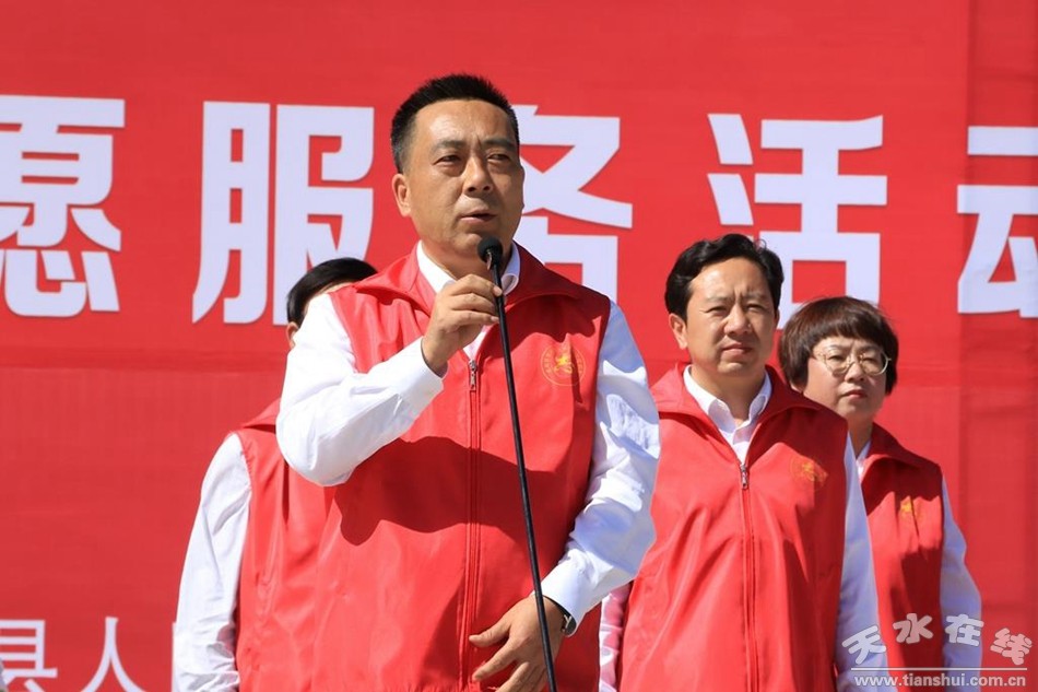 縣委書記王新強出席啟動儀式,宣布志愿服務活動啟動,并向15個鄉(xiāng)鎮(zhèn)和部分縣直部門單位志愿服務隊代表授旗。縣委副書記、代縣長王志成主持儀式?h人大常委會主任孫德銀,縣二級巡視員張璞銀,縣四大組織其他在家領(lǐng)導,法檢兩長,各鄉(xiāng)鎮(zhèn)、縣直各部門及駐縣各單位干部職工代表和志愿者代表共900多人參加啟動儀式。