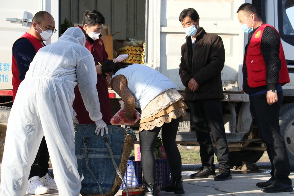 記者在楊河鎮(zhèn)西山村物資派送點(diǎn)看到,洛門森源蔬菜果品市場有限責(zé)任公司疫情防控專線配送車前,群眾自覺地排成間隔一米的長隊(duì),耐心、有序地領(lǐng)取生活用品。“這是由鎮(zhèn)政府給我們西山村專門組織的派送食品蔬菜的車。疫情當(dāng)前,我們?nèi)罕姴荒芡獬鲑徫,政府想我們所想,足不出戶就能解決日常生活。我堅(jiān)信有黨的領(lǐng)導(dǎo),疫情一定能夠戰(zhàn)勝!蔽魃酱宸揽刂驹刚、村醫(yī)陳學(xué)軍說。
