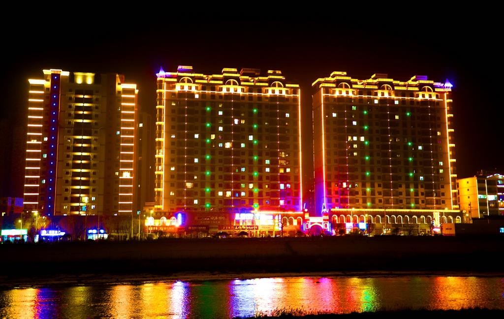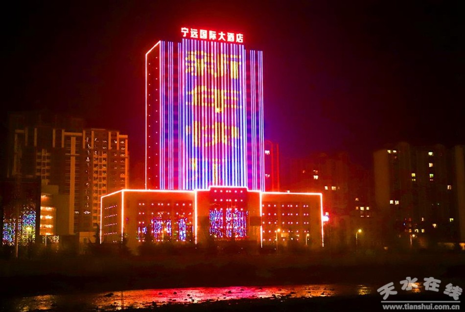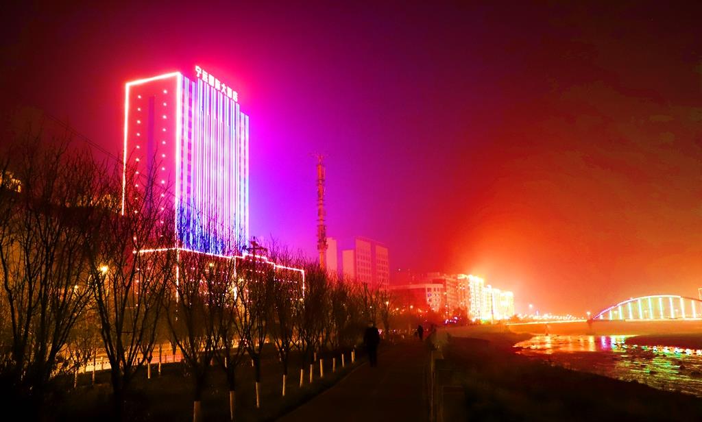 在人民廣場(chǎng)、在寧遠(yuǎn)大道、在渭河“彩虹橋”上,路燈、彩燈、景觀燈都亮起來了,所有的景色都“沐浴”在燈光之中,輪廓清晰、五彩斑斕、美輪美奐,讓這座城市散發(fā)著獨(dú)特的魅力。尤其是渭北標(biāo)志性建筑寧遠(yuǎn)國(guó)際大酒店,為迎接2022元旦佳節(jié),樓體滾動(dòng)展示“新年快樂”全息影像燈光秀,成了新的網(wǎng)紅“打卡地”,吸引了眾多市民駐足欣賞、拍攝分享。一團(tuán)團(tuán)、一族簇時(shí)尚動(dòng)感的燈光,像一件件五彩繽紛的“霓裳羽衣”,裝點(diǎn)著矗立的樓面,綠的清爽,紅的奔放,讓人目不睱接。