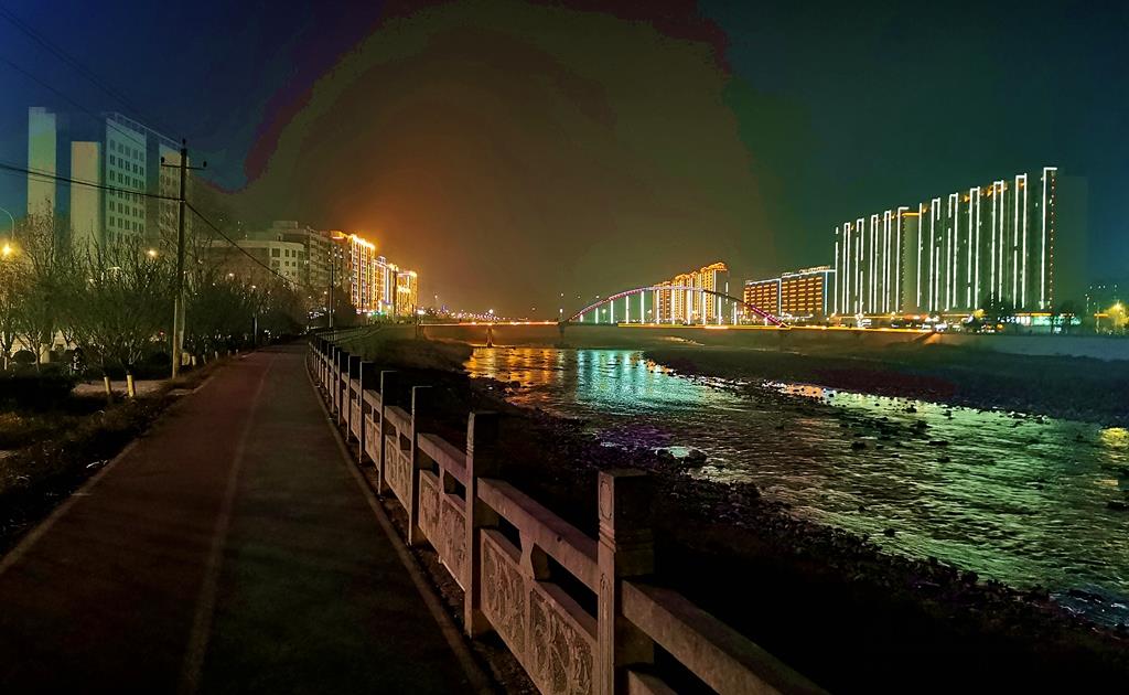 醉人的夜景讓享受元旦假期的居民感受到了“宜居宜業(yè)宜游”的小城之美。悠悠渭水安靜的流過,在燈火的映照下波光粼粼,像一位秀氣的少女,溫婉動(dòng)人。漫步在濱河路上,微風(fēng)拂面,朋友間善意的調(diào)侃、情侶們青春的笑意、孩子們歡快的腳步、老年人緩慢的徜徉,一切都是那么和諧自然,展示著新時(shí)代武山新氣象。