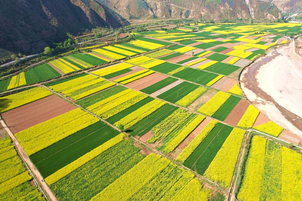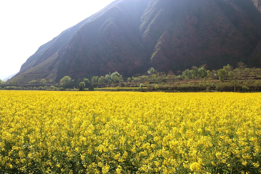 一朝風(fēng)動,百里花開。四月的山風(fēng)悄悄拂過渭川河畔,一夜之間,便將這渭河、榜沙、龍川河沿岸鍍上了一層金色,兩岸油菜花的花海在渭川河的滋潤下顯得格外絢爛,耀眼的金色在藍如水洗過的天空下相得益彰,若你置身其中,當有“何以丹青引墨,我自畫中走來”的意味,無需畫卷三千丈,亦能將這“蕓苔遠接萬里春”的盛世之景盡收眼底。自武山出發(fā),沿著310國道駕車而行,順山丹、灘歌、馬力、鴛鴦、樺林一線,在柔和的暖陽下,與四月的春風(fēng)相擁,空氣中到處都彌漫著油菜花的清香。