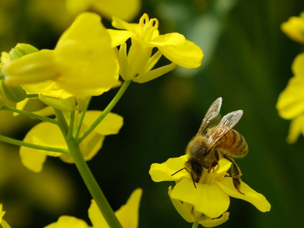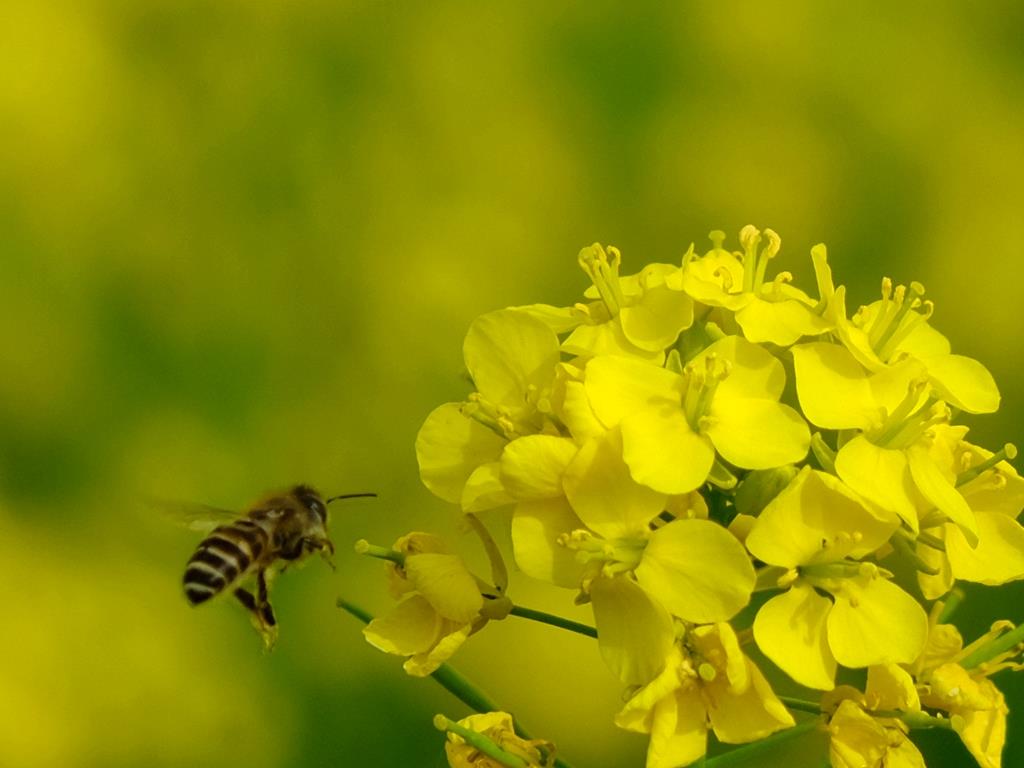 途徑樺林之時,我們一行人曾遇到一位年逾花甲的老人,頭上的花發(fā)雖有一頂深褐色的格子方巾遮擋,但仍有幾縷銀絲從耳畔垂了下來,她就盤腿坐在黃土地之中,手里揮動著鐵鏟,將那些個躋身在玉米芽邊兒旁邊的雜草挨個清除。在她身后便是一大片金黃色的油菜花田,偶爾會有一兩只小蜜蜂落在她的頭上的方巾、或者肩上,她便輕輕揮揮手為這些小精靈們指引方向,生怕驚擾了它們。