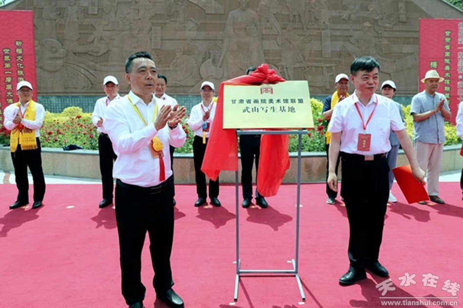 福地迎嘉客,丹青寫盛世。6月23日,甘肅省畫院美術(shù)館聯(lián)盟寫生基地在魯班山景區(qū)舉行揭牌儀式,甘肅畫院黨委書記、甘肅省畫院美術(shù)館聯(lián)盟監(jiān)委主席李積麒和武山縣委書記王新強(qiáng)共同揭牌。