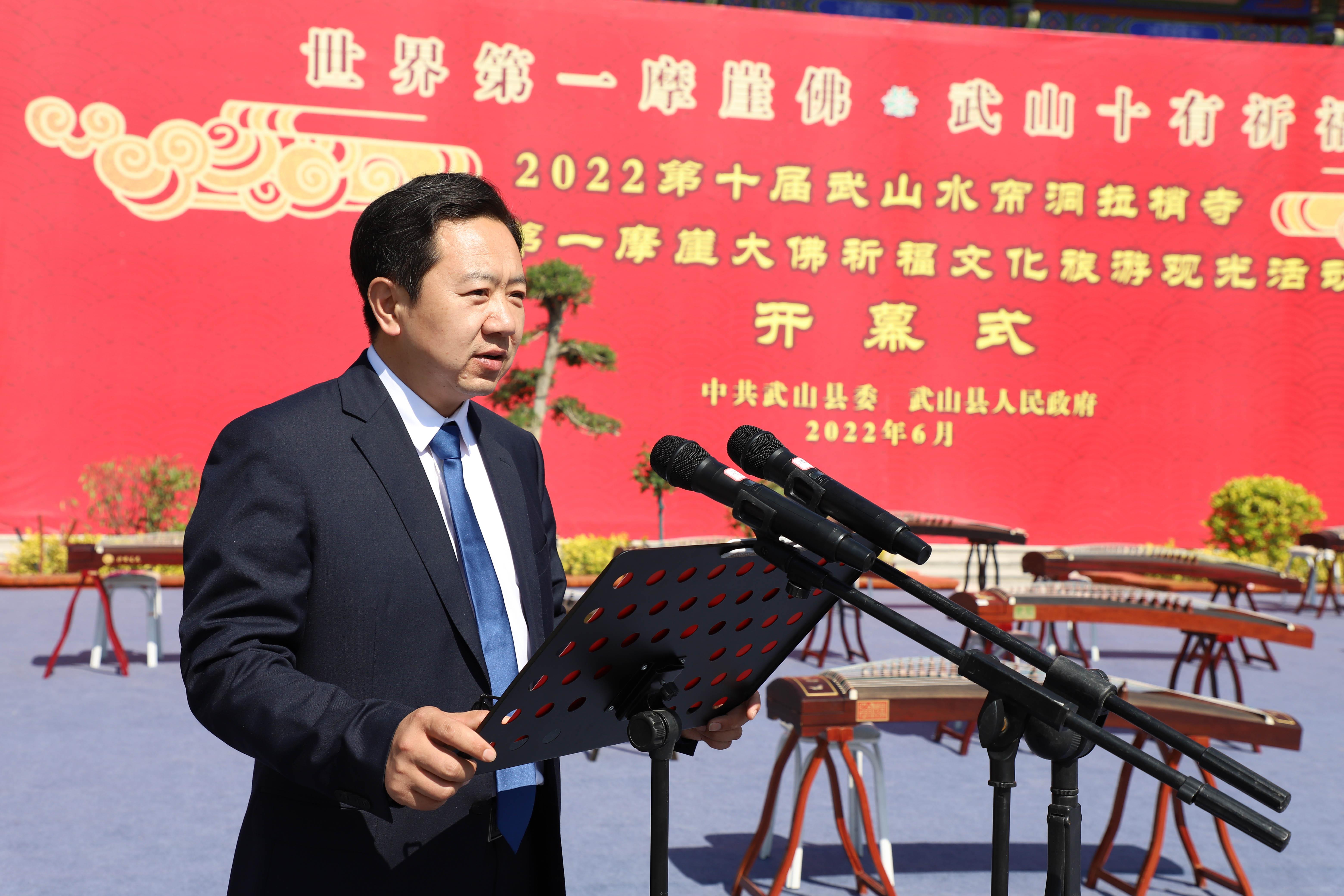 武山縣委書記王新強(qiáng),天水市四縣兩區(qū)領(lǐng)導(dǎo),武山縣人大常委會主任孫德銀及武山縣四大組織領(lǐng)導(dǎo),省內(nèi)武山籍文化人士,省市石窟文化研究專家學(xué)者,中央駐甘媒體記者、省市新聞媒體記者,省內(nèi)旅行社代表、部分投資客商,武山縣退休老干部、縣內(nèi)文旅行業(yè)和群眾代表參加開幕式。武山縣委副書記、縣長王志成主持儀式,武山縣政協(xié)主席龐明全致祈福辭。