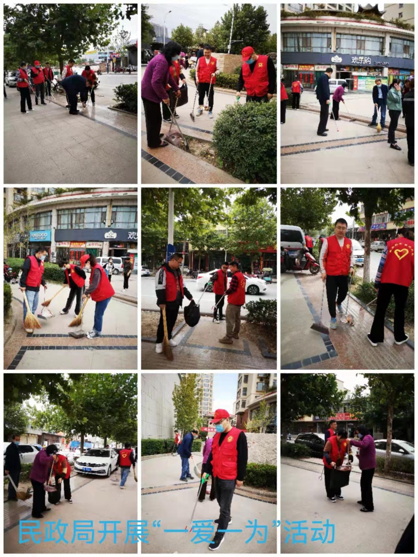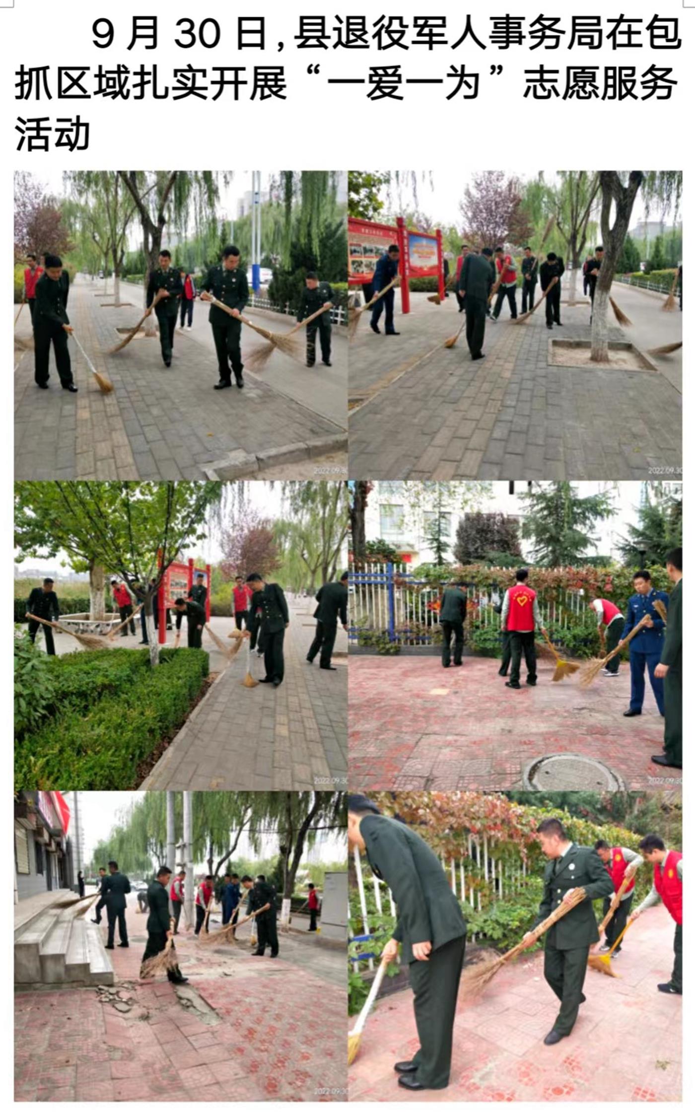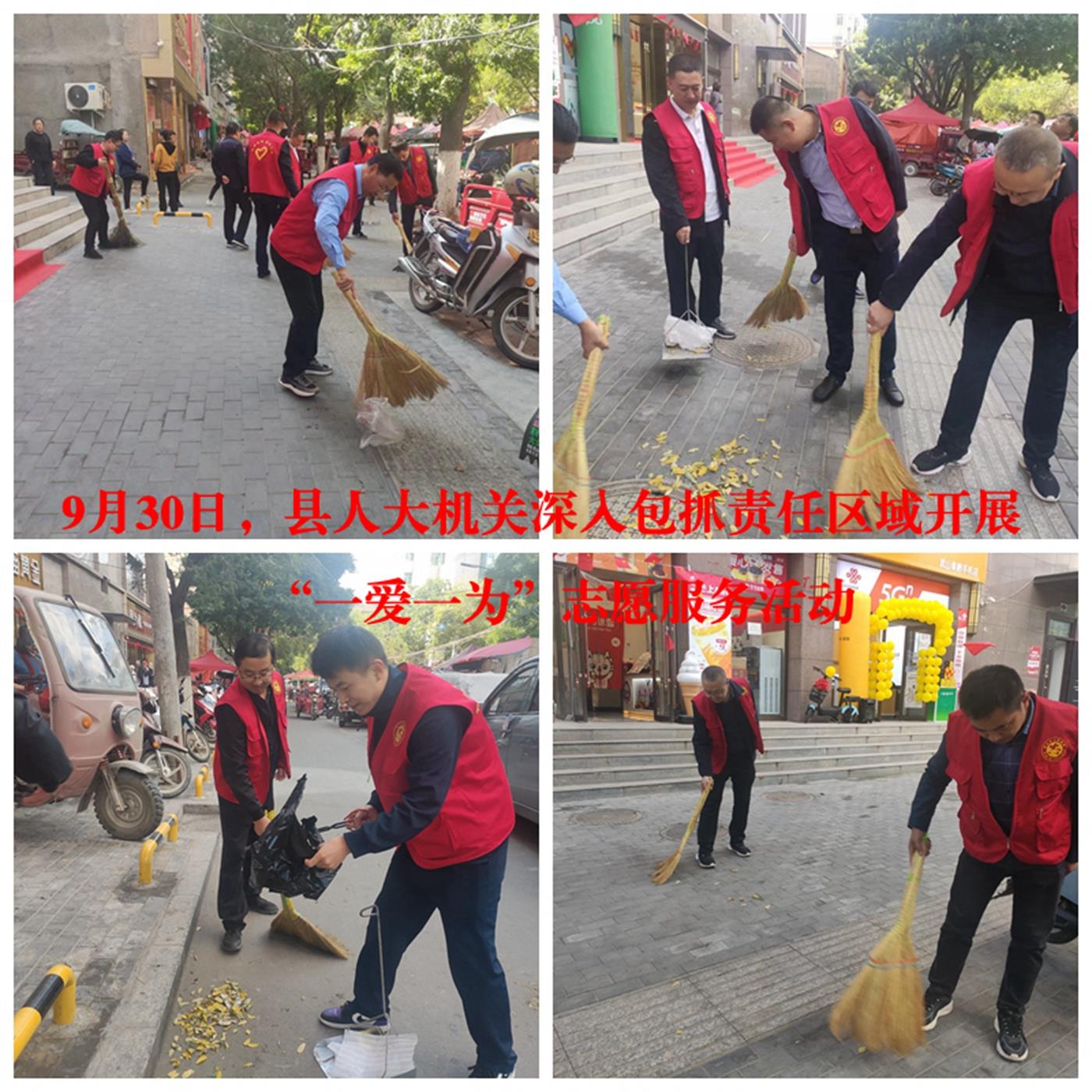 活動(dòng)中,大家認(rèn)真將縣城河道、墻面、道路邊的落葉、白色垃圾、煙頭、紙屑、雜亂廣告等廢棄物清掃干凈,不留衛(wèi)生死角。一個(gè)個(gè)身著紅馬甲的志愿者將“文明”化作一個(gè)個(gè)具體行動(dòng),將志愿服務(wù)工作延伸到每個(gè)角落,喜迎新中國(guó)73周年華誕。