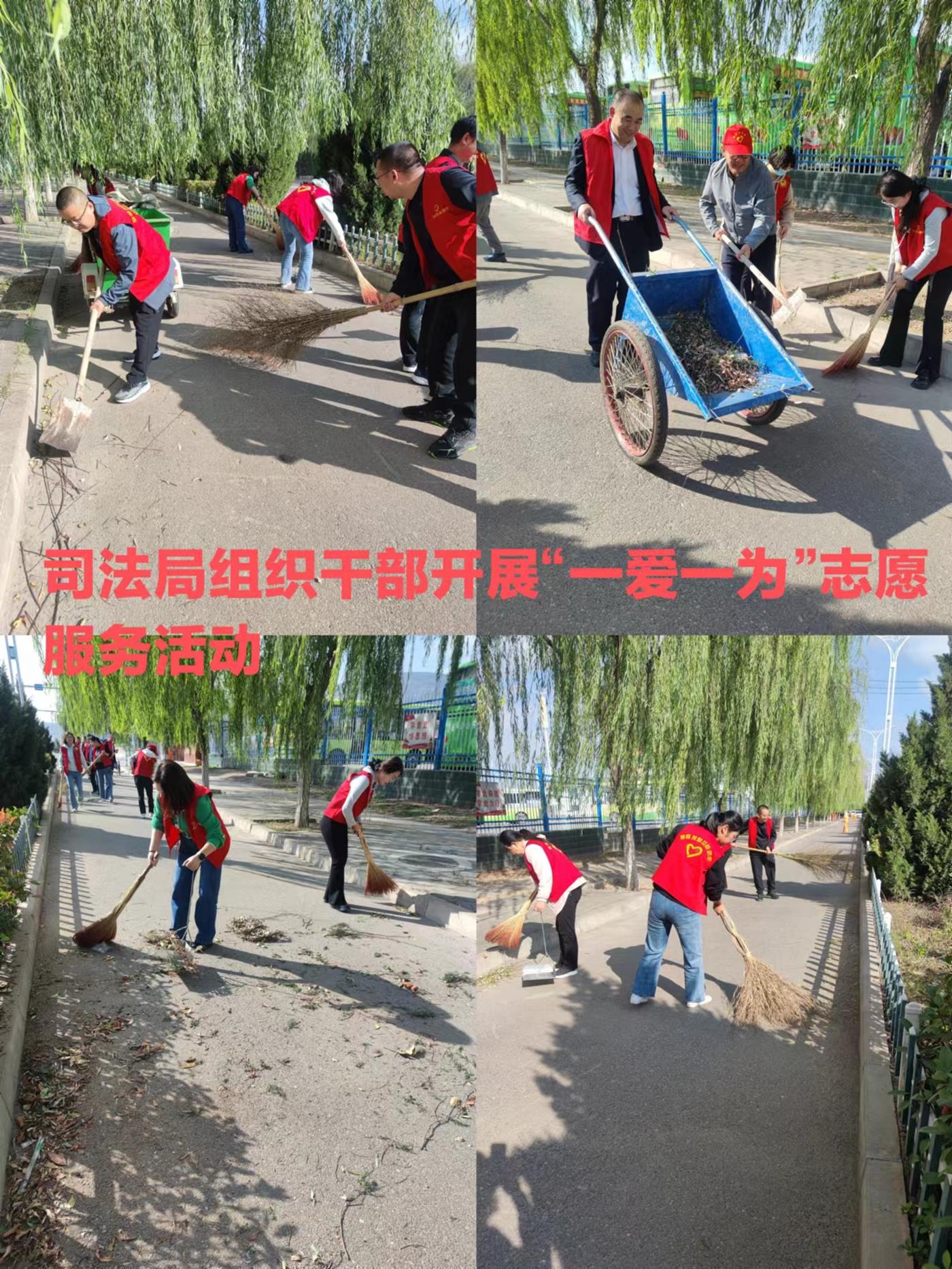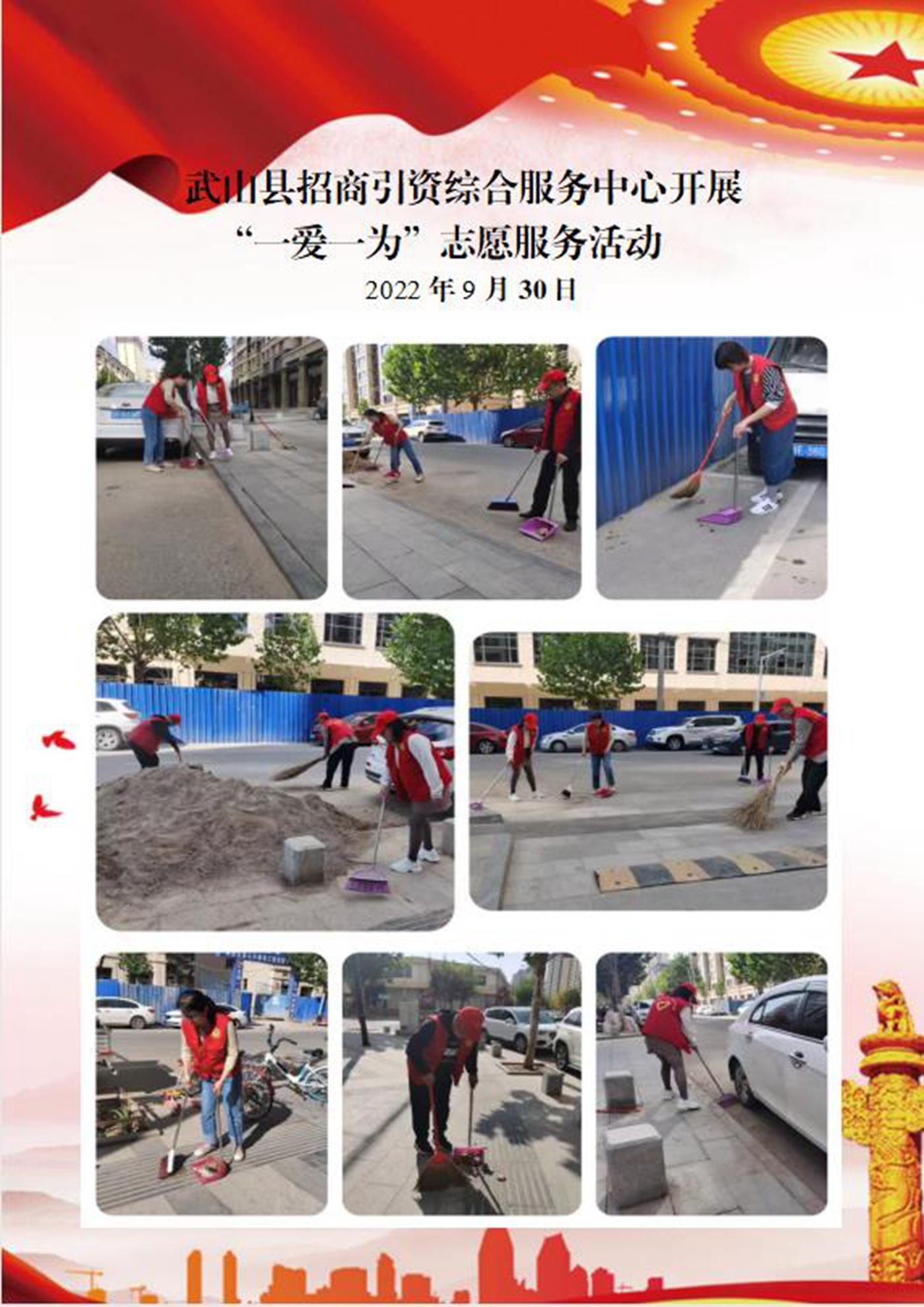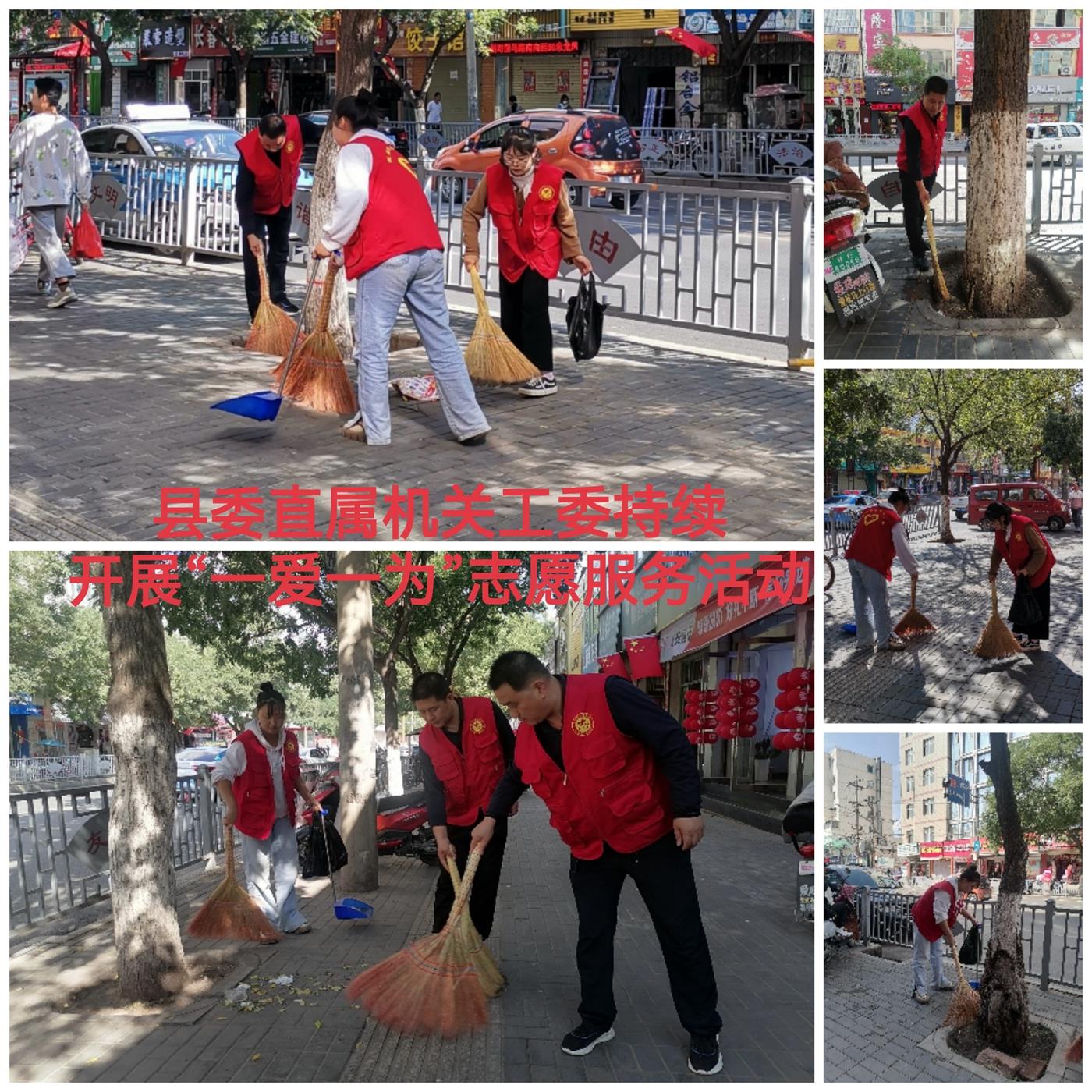 活動(dòng)中,大家認(rèn)真將縣城河道、墻面、道路邊的落葉、白色垃圾、煙頭、紙屑、雜亂廣告等廢棄物清掃干凈,不留衛(wèi)生死角。一個(gè)個(gè)身著紅馬甲的志愿者將“文明”化作一個(gè)個(gè)具體行動(dòng),將志愿服務(wù)工作延伸到每個(gè)角落,喜迎新中國(guó)73周年華誕。