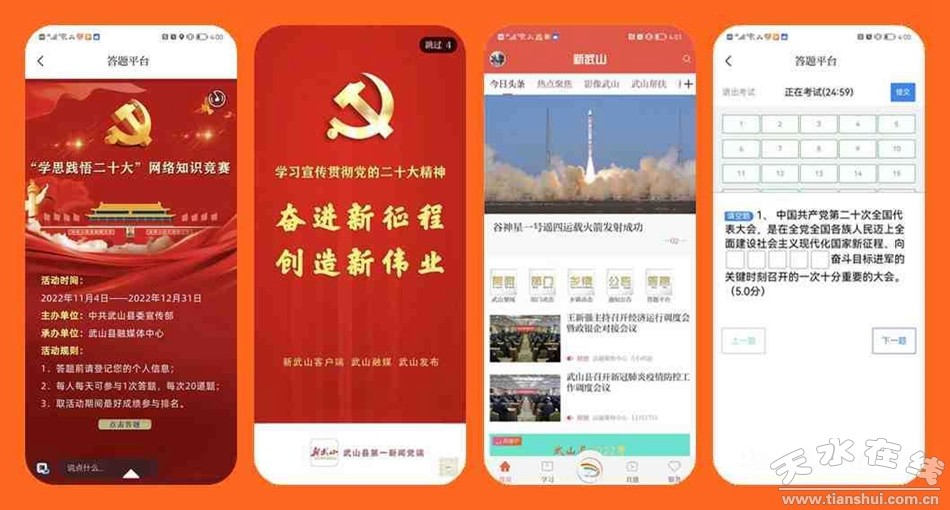 武山縣著力提升理論研究闡釋、宣傳宣講的穿透力,全域覆蓋做深做 活社會(huì)宣傳感染力,全媒上陣做大主題宣傳傳播力,創(chuàng)新開展群眾性宣傳 教育凝聚力, 以氛圍最濃、做法最靚、成果最多為目標(biāo), 以“20 個(gè)一”全 面興起學(xué)習(xí)研討、理論闡釋、新聞報(bào)道、集中宣講、社會(huì)宣傳、網(wǎng)絡(luò)傳播 “6 個(gè)熱潮” ,聯(lián)動(dòng)形成學(xué)習(xí)宣傳“最強(qiáng)音” ,推動(dòng)黨的二十大精神深入干部 群眾心里、扎根渭川大地。