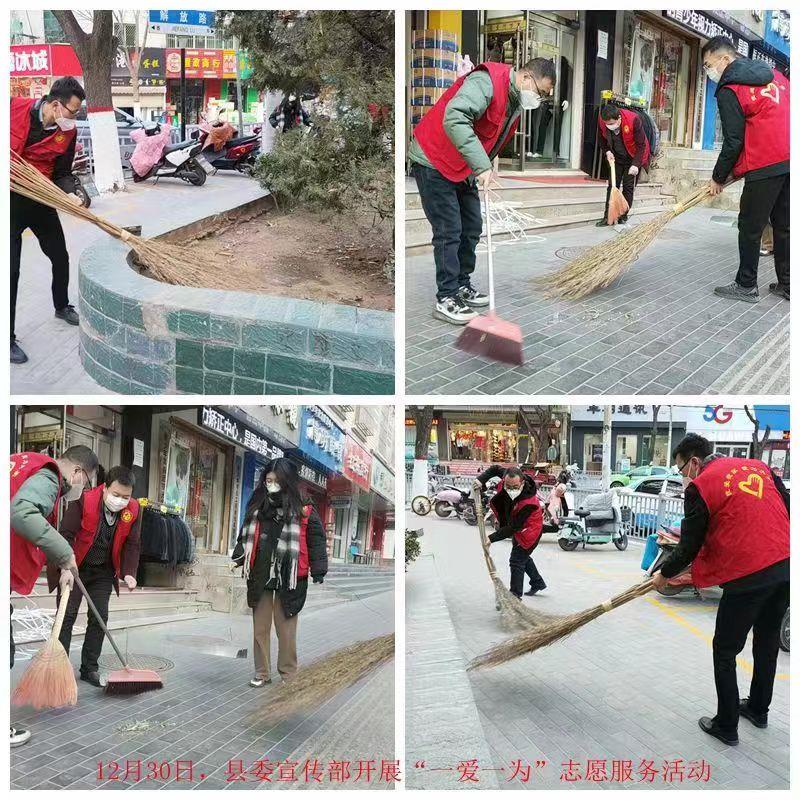 武山縣融媒體中心12月30日訊(記者 唐文斌)在元旦佳節(jié)來臨之際,為營造喜慶祥和干凈歡樂的節(jié)日氛圍,弘揚(yáng)節(jié)日文化,12月30日,武山縣各鄉(xiāng)鎮(zhèn)各部門各單位統(tǒng)籌新時(shí)代文明實(shí)踐志愿服務(wù)隊(duì)伍,圍繞衛(wèi)生清潔、雜物清除等內(nèi)容,組織干部群眾志愿者認(rèn)真開展志愿服務(wù)活動(dòng),把暖心服務(wù)送到群眾面前。