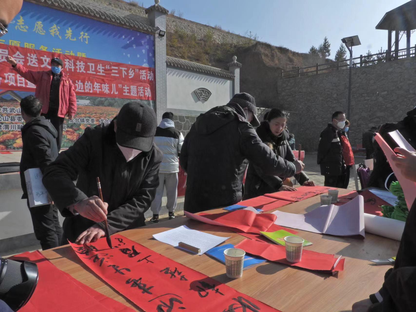 1月12日,結合全縣全域文明實踐“幸?燔嚒敝驹阜⻊枕椖眶2023年文化科技衛(wèi)生“三下鄉(xiāng)”活動,縣政協(xié)組織部分政協(xié)委員、老干部、機關干部職工深入龍臺鎮(zhèn)馬年村,現(xiàn)場義寫書畫、送春聯(lián)、送科技,宣傳黨的二十大精神,持續(xù)推動“十個一”活動深入開展。