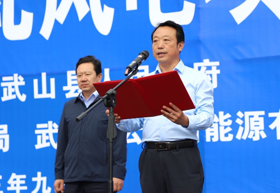 武山縣融媒體中心訊(記者 蒲愛民 管秋勇) 9月14日,武山縣太皇山50兆瓦風(fēng)電項目舉行開工儀式,縣委書記王新強出席開工儀式并宣布項目開工,縣委副書記、縣長王志成致辭,縣人大常委會主任孫德銀主持儀式,南京電器電力工程有限公司總經(jīng)理姚漢卿介紹項目情況,縣政協(xié)副主席吳健明出席儀式。