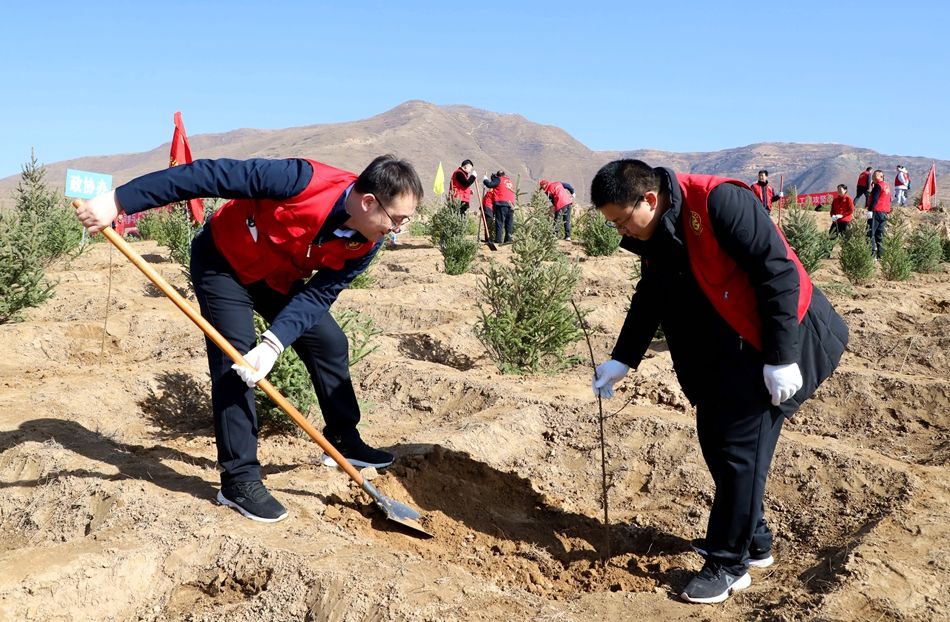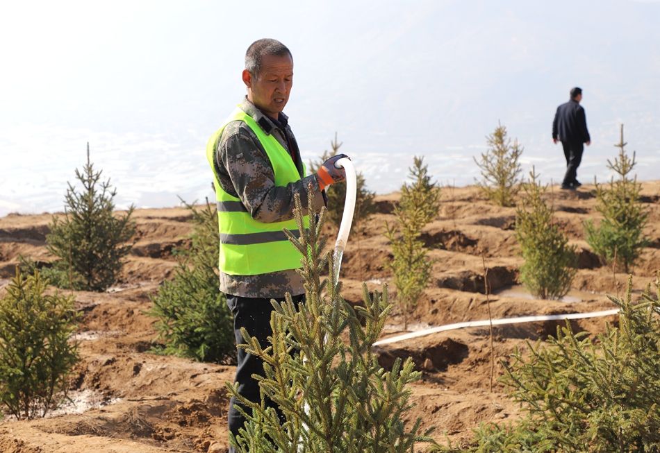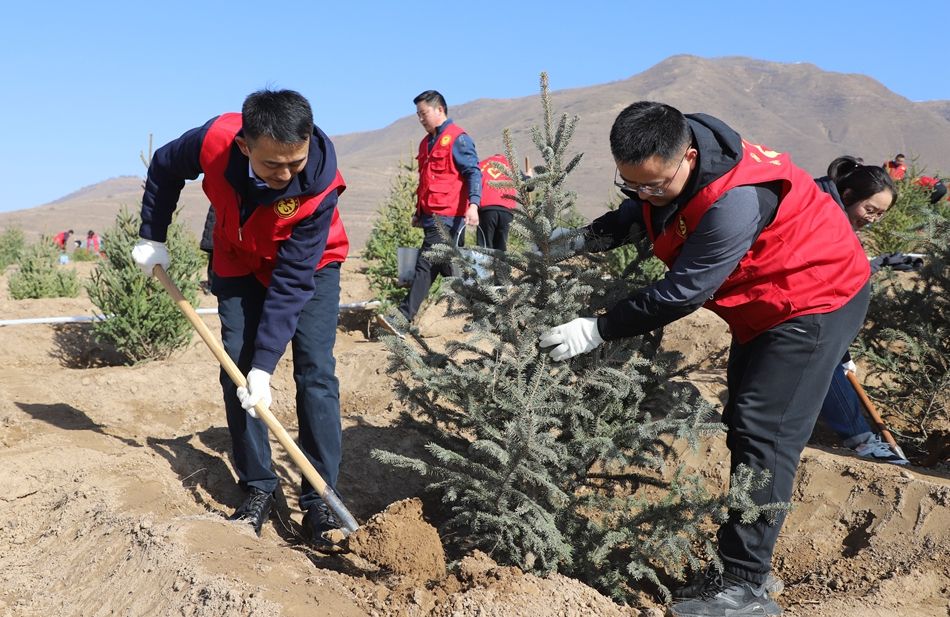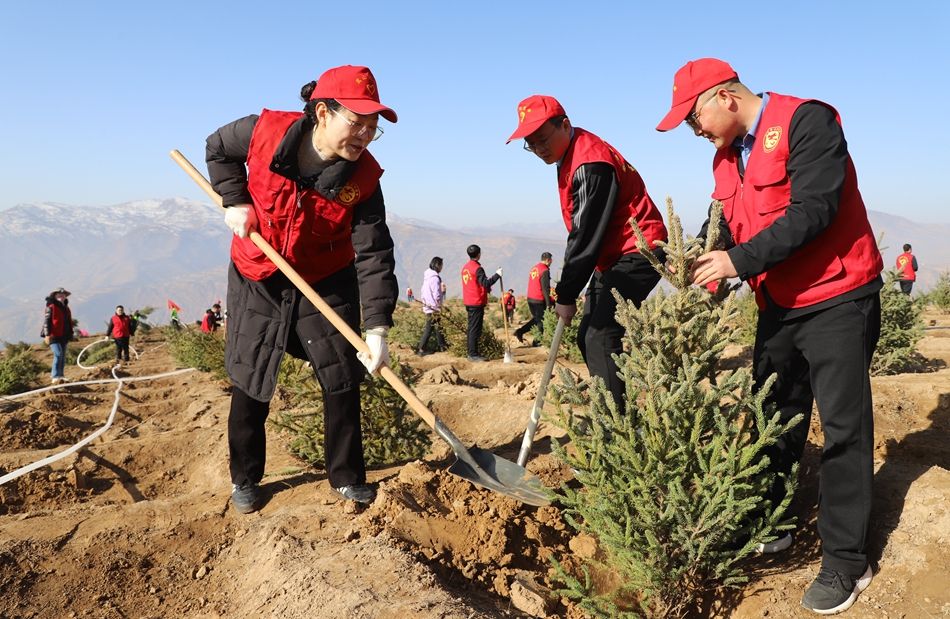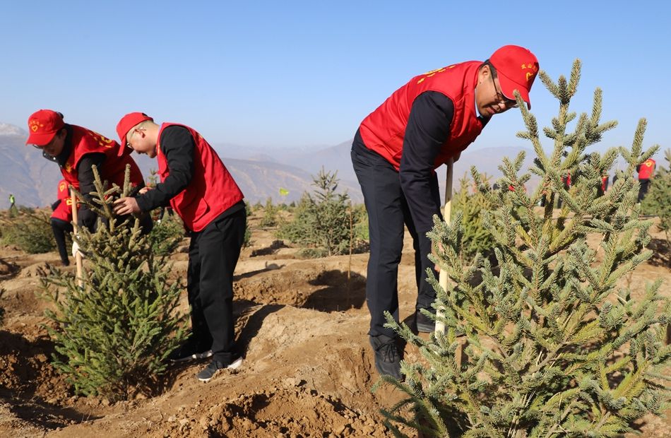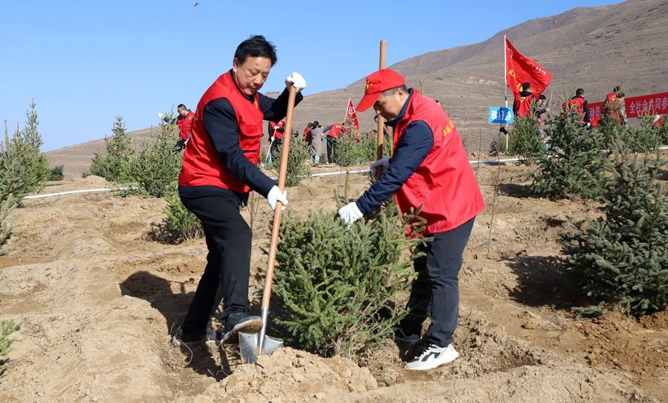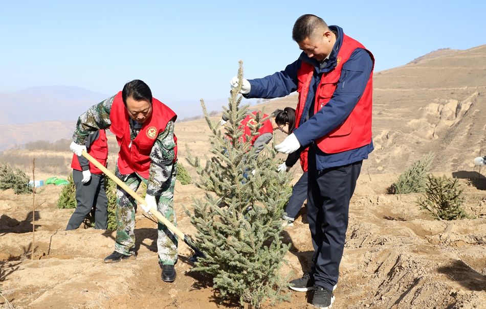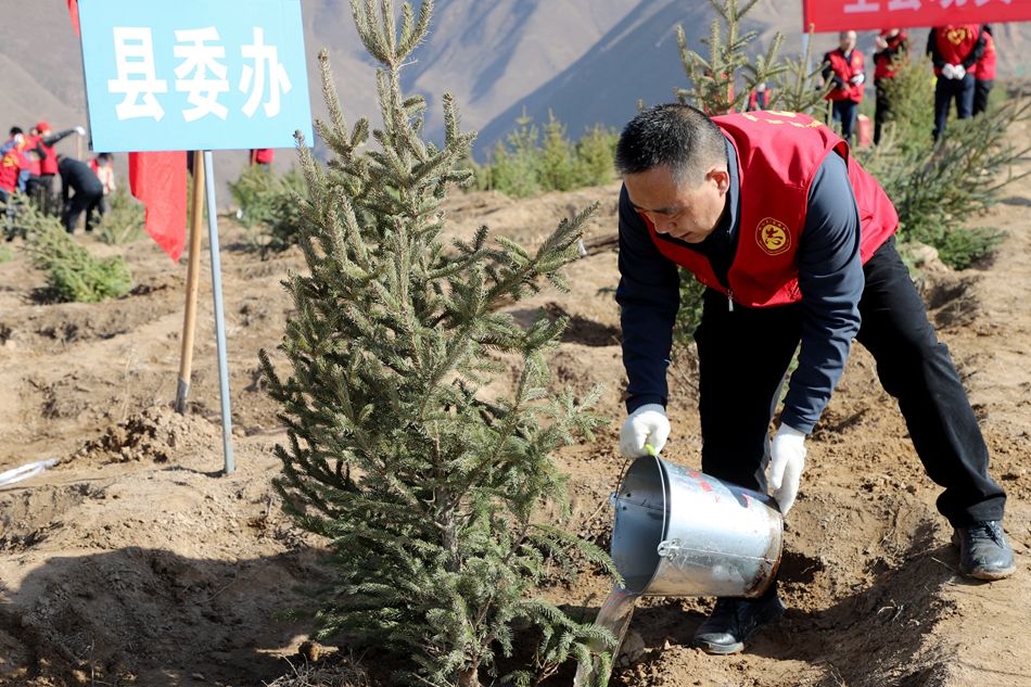 植樹現(xiàn)場(chǎng),王新強(qiáng)等縣領(lǐng)導(dǎo)與干部群眾團(tuán)結(jié)協(xié)作,揮鍬填土、扶樹正苗、培實(shí)新土、澆水定根,每道工序一絲不茍、認(rèn)真細(xì)致。經(jīng)過干部職工辛勤勞動(dòng),新栽種的10000余株國(guó)槐和云杉迎風(fēng)挺立,煥發(fā)出綠色希望,為初春的武山大地增添了新的生機(jī)和活力。