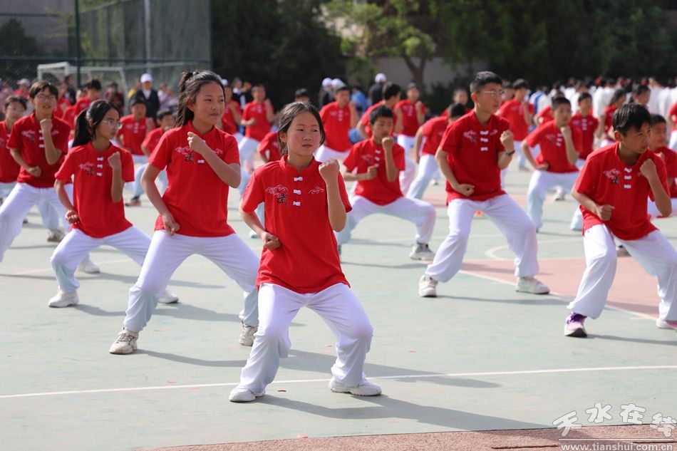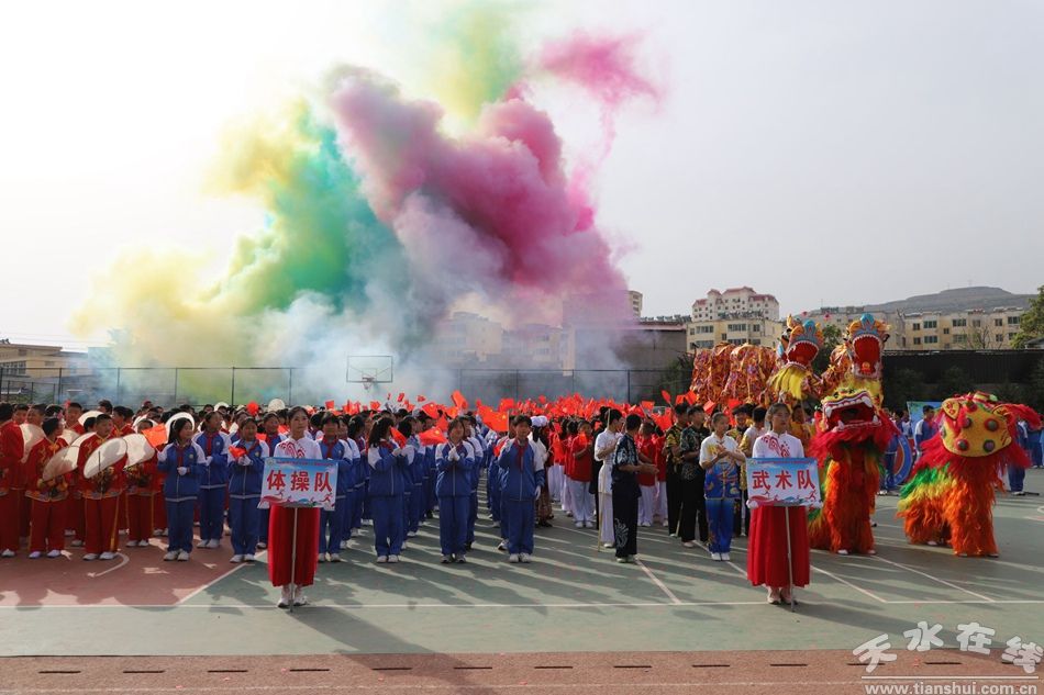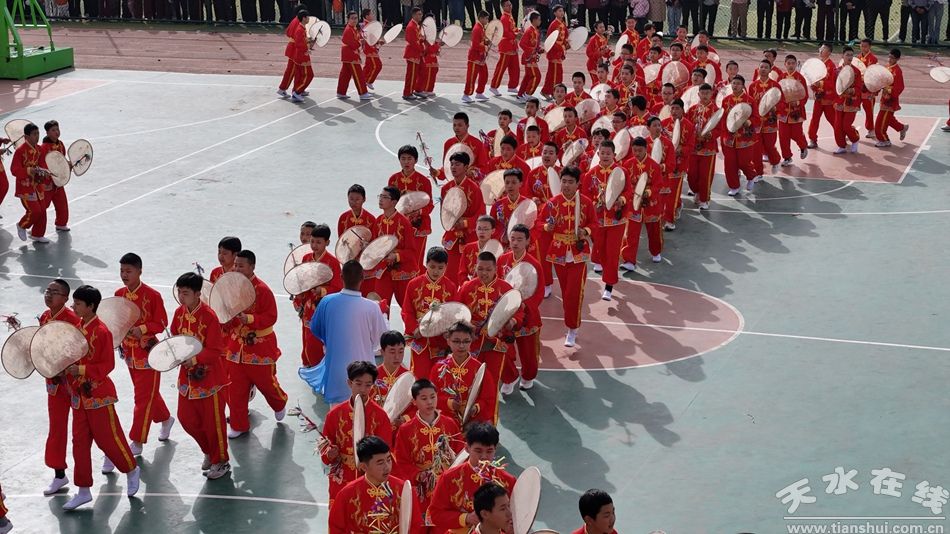 隨后的節(jié)目表演,將現(xiàn)場氣氛推向高潮。舞龍舞獅上下翻飛、騰躍舞動,盡顯青春活力;武術(shù)表演剛勁有力,一招一式展現(xiàn)少年豪氣;韻律操、廣播體操動感活潑,洋溢著青春的熱情;扇子舞靈動優(yōu)美,如行云流水;旋鼓舞鏗鏘有力,鼓點震撼人心;器樂表演旋律悠揚,余音繞梁。這些節(jié)目巧妙地將武山傳統(tǒng)非遺與學生的青春活力相結(jié)合,為全校師生及家長帶來了一場視覺與聽覺的盛宴,贏得了陣陣掌聲與喝彩。