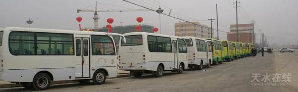 張家川縣是國扶貧困縣,自然條件比較差,經(jīng)濟(jì)文化不發(fā)達(dá),全縣一直沒有公交車。今年9月,經(jīng)張家川縣招商局牽線搭橋,縣交通局全力爭取,哈爾濱客商王光明決定投資300萬元,購置19座中型少林客車20輛,租賃辦公和停車場地,注冊成立了張家川回族自治縣光明公共交通有限公司。