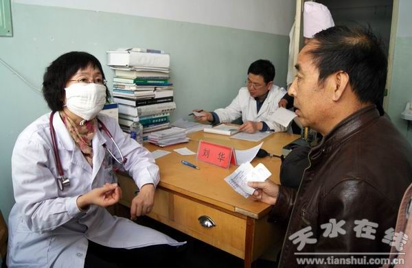(王光慶在張家川鎮(zhèn)中心衛(wèi)生院與省人民醫(yī)院遠(yuǎn)程會診中心專家通話 )