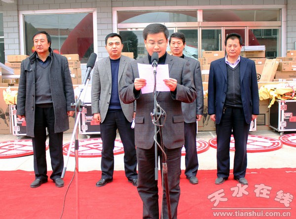 為豐富農民業(yè)余文化生活,提高農民文化素質,為全面實現小康社會打下堅實的基礎,12月1日,張家川回族自治縣舉行鄉(xiāng)鎮(zhèn)文化站設備、器材發(fā)放儀式?h委常委、宣傳部長王志軍,縣人大副主任馬蘭生,副縣長李振,縣政協副主席王存珠出席儀式并為各鄉(xiāng)鎮(zhèn)授牌。