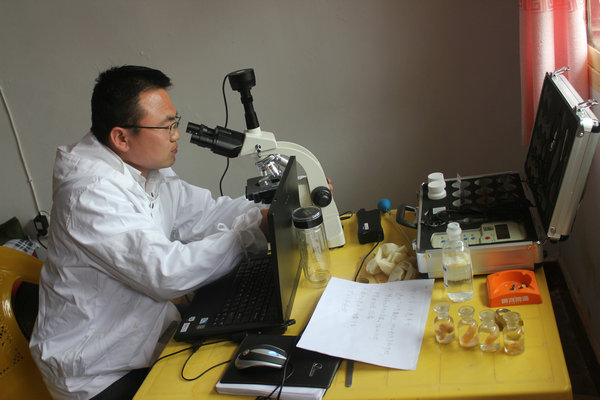 4月23日,張家川回族自治縣畜牧局負責(zé)人帶領(lǐng)工作人員深入馬鹿鄉(xiāng)花園村秦嶺細鱗鮭馴養(yǎng)繁殖場,查看秦嶺細鱗鮭人工繁殖孵化工作進展情況。
