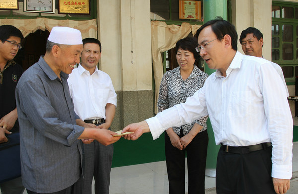 在穆斯林傳統(tǒng)節(jié)日“爾德節(jié)”即將來臨之際,8月14日下午,張家川回族自治縣委副書記、縣長馬中奇,縣委常委、統(tǒng)戰(zhàn)部長馬玉鳳,縣人大副主任王九仲,縣政協(xié)副主席馬威深入龍山鎮(zhèn)、張川鎮(zhèn),看望慰問廣大穆斯林群眾,向他們致以節(jié)日的衷心祝福,并對他們?yōu)槿h經(jīng)濟發(fā)展、民族團結、社會和諧穩(wěn)定做出的貢獻表示衷心感謝?h政府辦、宗教局負責人陪同慰問。