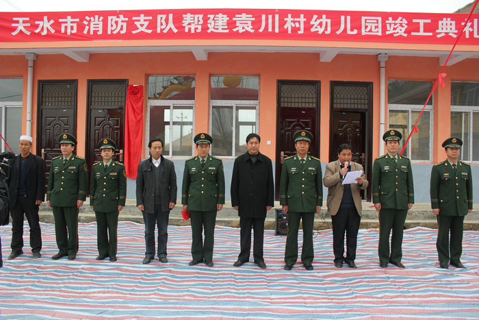 百年教育,教育為本。學(xué)前教育作為整個(gè)國民教育的一部分,對(duì)一個(gè)人一生的成長有著舉足輕重的作用。11月20日,由天水市消防支隊(duì)在“雙聯(lián)”行動(dòng)中幫建的張家川回族自治縣張川鎮(zhèn)袁川村幼兒園竣工。市消防支隊(duì)支隊(duì)長郭學(xué)峰、政委盛光明,張家川縣委常委、政法委書記何永東及張川鎮(zhèn)和縣雙聯(lián)辦負(fù)責(zé)人,袁川村群眾共60余人參加幼兒園竣工儀式。
