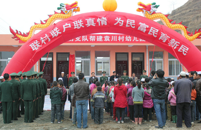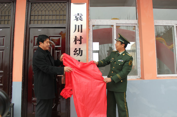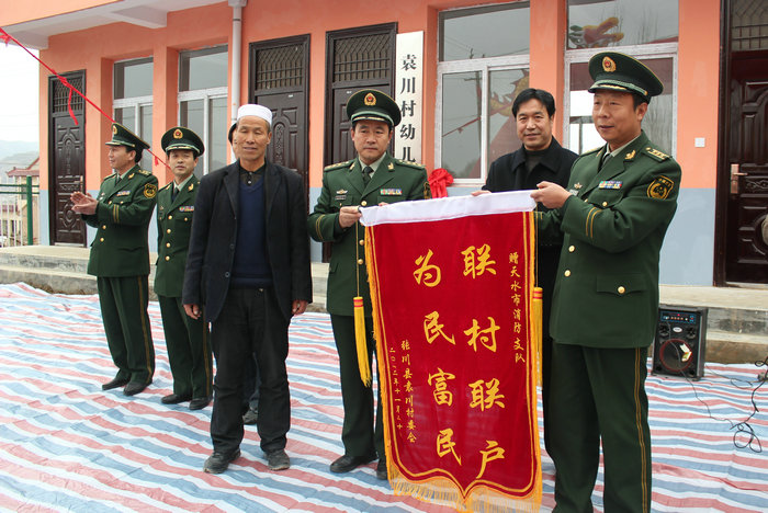 當(dāng)袁川村支書楊福海拿著新竣工的幼兒園鑰匙時(shí)激動(dòng)不已,為表示感謝,給市消防支隊(duì)送上旌旗一副,上書“聯(lián)村聯(lián)戶,為民富民”八個(gè)大字是對(duì)市消防支隊(duì)感激之情的最好詮釋。