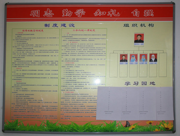 團市委書記王新強(左二)及組織部長馮建新(右一)察看縣阿語學校學生宿舍