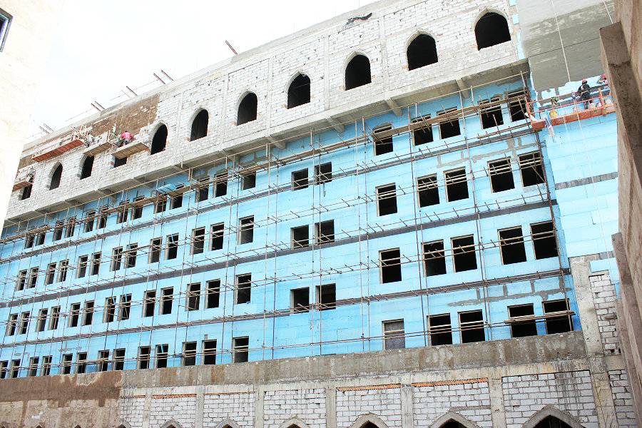 在電影院施工地段,幾名工人正在進行裝飾工序。“為了打造設(shè)施齊全、功能完善、富有特色、環(huán)境優(yōu)美的影劇院,我們在裝飾設(shè)計時堅持以聚會會議為主,兼顧演出,裝修造價服從裝飾效果和適度超前的原則,并充分體現(xiàn)伊斯蘭教民族特色文化元素和民族文化內(nèi)涵,達到了內(nèi)聚力量、外樹形象的效果。今年60縣慶節(jié)目匯演將在這里舉行,我們心里特別高興。”深圳瑞和建筑裝飾股份有限公司負責(zé)人對記者如是說道。