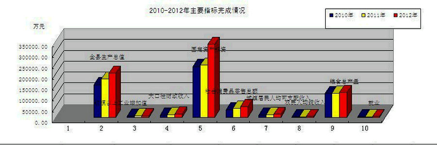 ——綜合實(shí)力明顯增強(qiáng)。2012年全縣實(shí)現(xiàn)生產(chǎn)總值20.8億元,較建縣之初的903.48萬(wàn)元增長(zhǎng)了229倍;較改革開(kāi)放初1980年的3146.14萬(wàn)元增長(zhǎng)了65倍。固定資產(chǎn)投資33.81億元,較1953年的 10萬(wàn)元增長(zhǎng)了33809倍;較1980年的120.90萬(wàn)元增長(zhǎng)了2795倍。大口徑財(cái)政收入14928萬(wàn)元,較1953年的38.3萬(wàn)元增加14889.7萬(wàn)元,增加388倍;較1980年的67.3萬(wàn)元增加14860.7萬(wàn)元 ,增長(zhǎng)了220倍。社會(huì)消費(fèi)品零售總額4.751億元,較1953年的292.81萬(wàn)元增加了47217萬(wàn)元,增長(zhǎng)了161倍;較1980年的1531.55萬(wàn)元增加了45978萬(wàn)元 ,增長(zhǎng)了30倍。第一產(chǎn)業(yè)增加值達(dá)到49265萬(wàn)元,第二產(chǎn)業(yè)增加值達(dá)到49977萬(wàn)元,第三產(chǎn)業(yè)增加值達(dá)到108728萬(wàn)元,城鎮(zhèn)居民可支配收入達(dá)到13120元。
