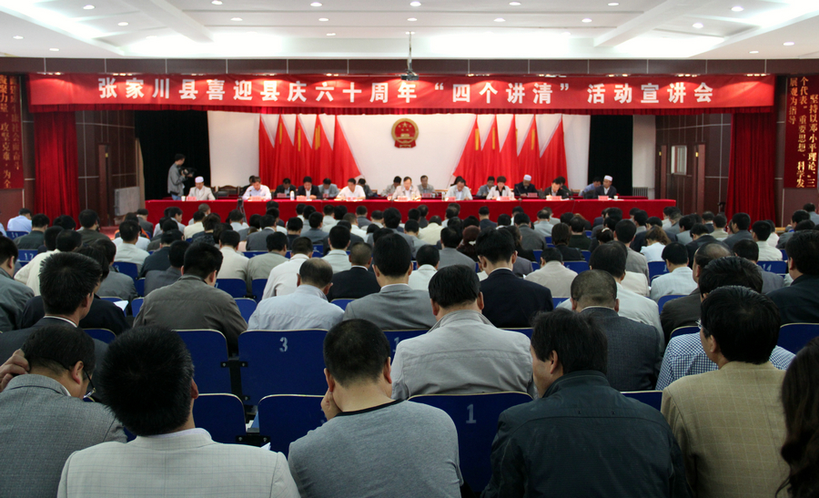 7月11日,張家川回族自治縣召開喜迎縣慶六十周年“四個講清”活動宣講大會?h四大組織在家領(lǐng)導及法檢兩長、各鄉(xiāng)鎮(zhèn)黨委書記、鄉(xiāng)長、縣直單位科級領(lǐng)導干部,城區(qū)部分學校、宗教活動場所負責人、張川鎮(zhèn)部分農(nóng)民代表共480余人參加了會議。