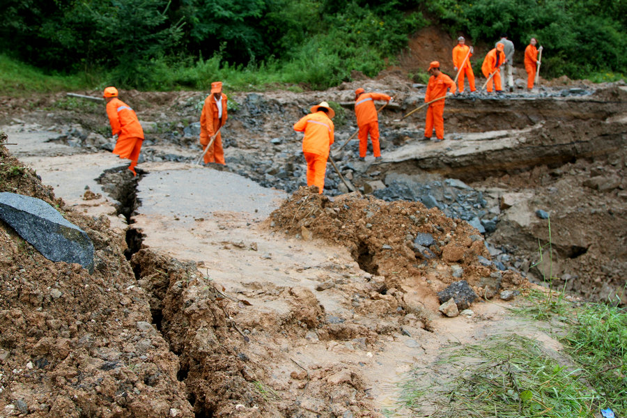 “6•20”特大暴雨和“7•22”甘肅岷縣漳縣6.6級地震致使張家川回族自治縣15鄉(xiāng)鎮(zhèn)255村嚴(yán)重受災(zāi),暴雨、山洪頻發(fā),村莊、路段出現(xiàn)滑坡、崩塌、泥石流等地質(zhì)災(zāi)害,橋梁斷裂、道路毀壞、房屋倒塌嚴(yán)重,特別是莊天二級公路、S305公路、張隴公路部分中斷。面對災(zāi)魔,張家川縣廣大干部群眾迅速行動,按照“縣級干部包鄉(xiāng)、鄉(xiāng)鎮(zhèn)和雙聯(lián)科級干部包村、鄉(xiāng)村干部和雙聯(lián)干部包戶、縣直部門包重點區(qū)域,定任務(wù)、定責(zé)任、定措施,保人身安全、保重點設(shè)施、保社會穩(wěn)定”的“四包三定三!钡墓ぷ髫(zé)任制,全力開展搶險救災(zāi)工作,奏響了一曲干群合力抗大災(zāi),萬眾一心促生產(chǎn)的合奏曲。張家川縣新聞中心、手機報特開辟【搶險救災(zāi)】專欄,組織記者深入受災(zāi)現(xiàn)場和搶險救災(zāi)一線,真實、客觀、準(zhǔn)確、及時反映搶險救災(zāi)情況。