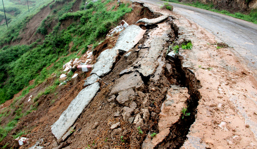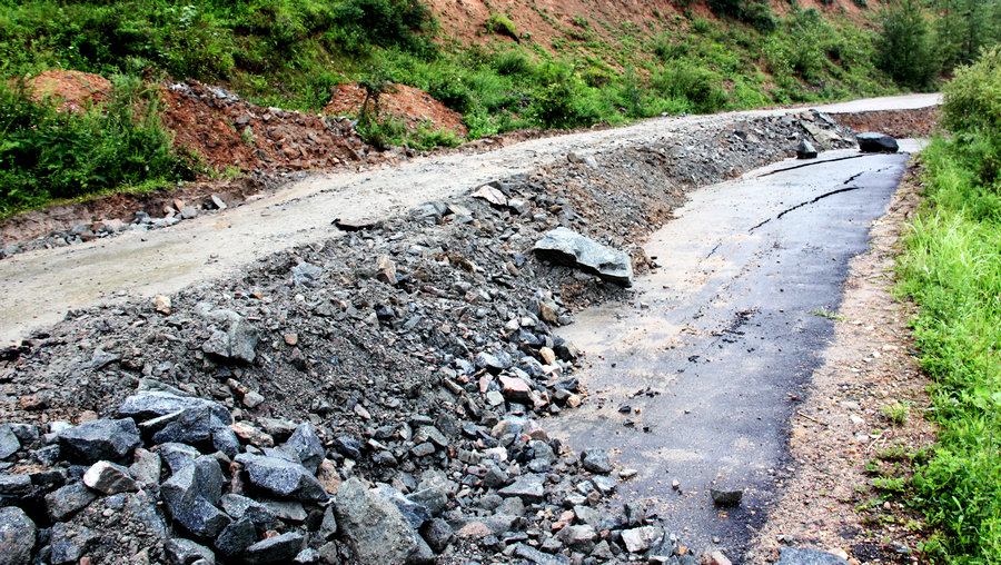 連續(xù)強降水和“7•22”甘肅岷縣漳縣6.6級地震致使張家川縣主要出縣交通要道嚴(yán)重受損,張家川縣出縣交通告急。7月26日15時,省道S305公路K50+240段、K36+627段山體滑坡,路基下陷,東部大動脈道路中斷。