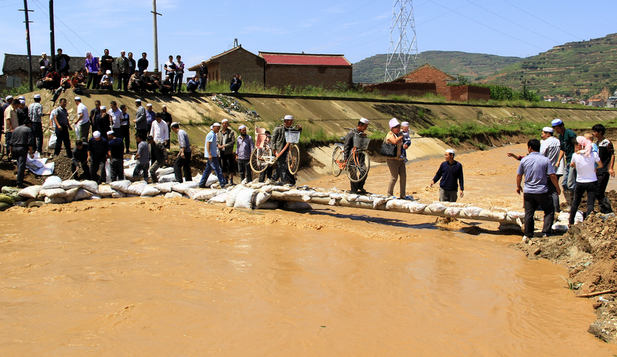 ▲群眾經(jīng)過搭建好的便橋