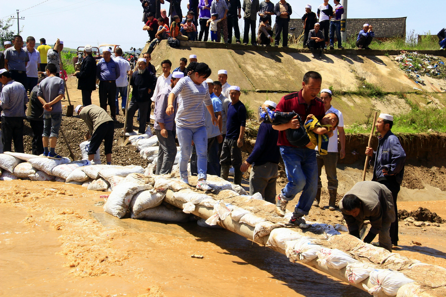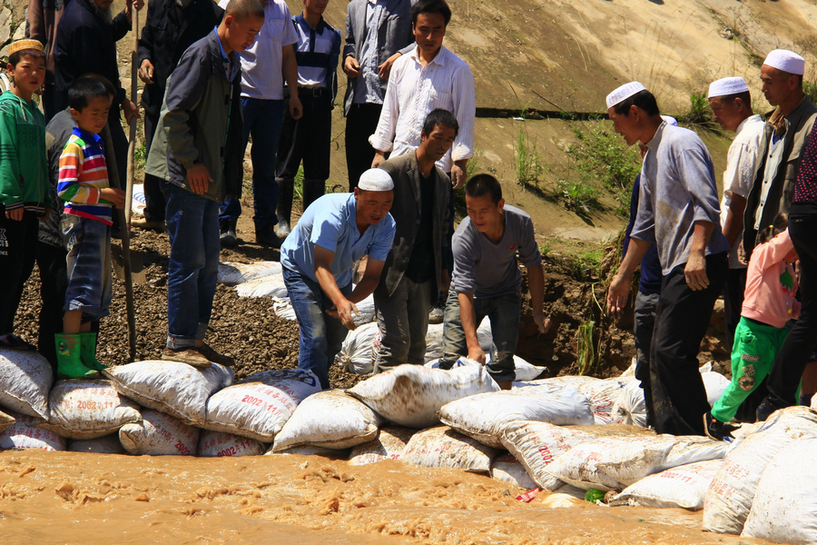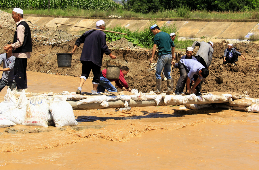 “這座橋被大水沖毀后,前后已經(jīng)搶修了四次。27日白天剛搶修通,結(jié)果當(dāng)晚的大雨又把橋梁沖毀了!闭趽屝薇銟虻鸟R琦一邊裝沙袋,一邊告訴記者,自從6月20日暴雨過后,這座橋就被洪水沖毀,縣政府及時(shí)責(zé)成張家川鎮(zhèn)進(jìn)行了搶修,但是每次搶修成功后不久就又會(huì)被洪水沖毀,前后一共搶修了四次。馬琦說:“希望這次不要再被沖毀。”