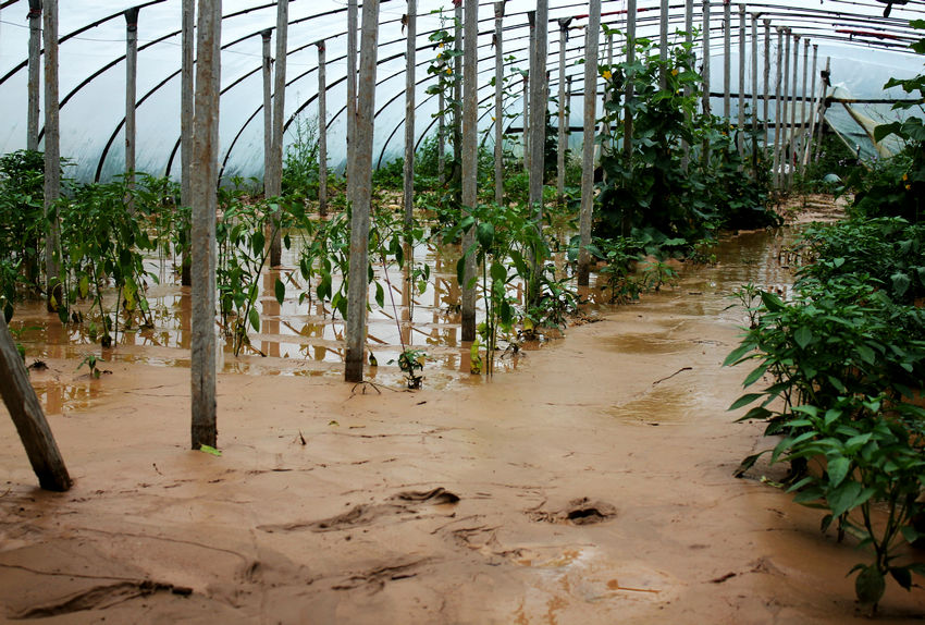 ▲持續(xù)強(qiáng)降雨導(dǎo)致日光溫棚中的辣椒全部被淤泥淹沒