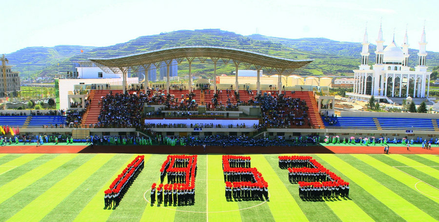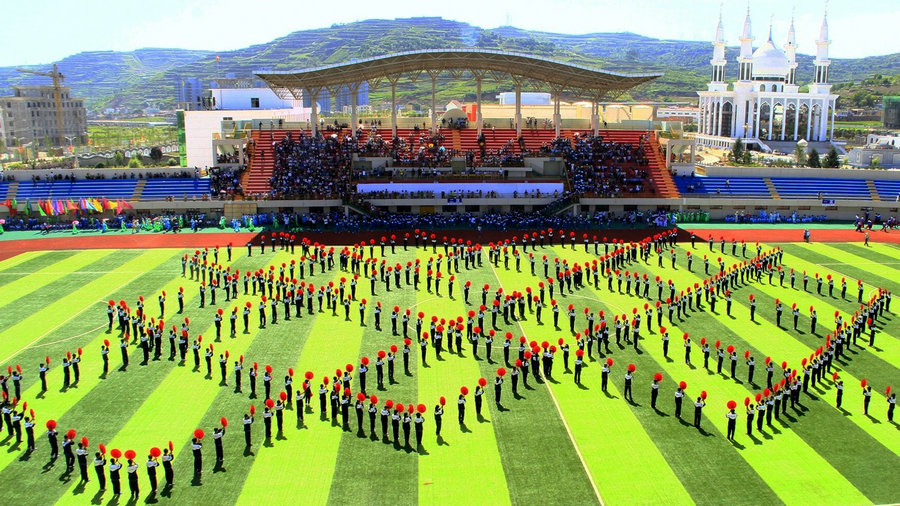 張家川回族自治縣將于8月14日舉行縣慶60周年慶;顒(dòng),為全面展示自治縣33萬(wàn)回漢人民昂揚(yáng)向上的良好精神風(fēng)貌,營(yíng)造縣慶喜慶氛圍,7月30日下午,3000多名演職人員匯聚縣體育中心,參與縣慶前大型團(tuán)體操的第一次預(yù)演活動(dòng)。