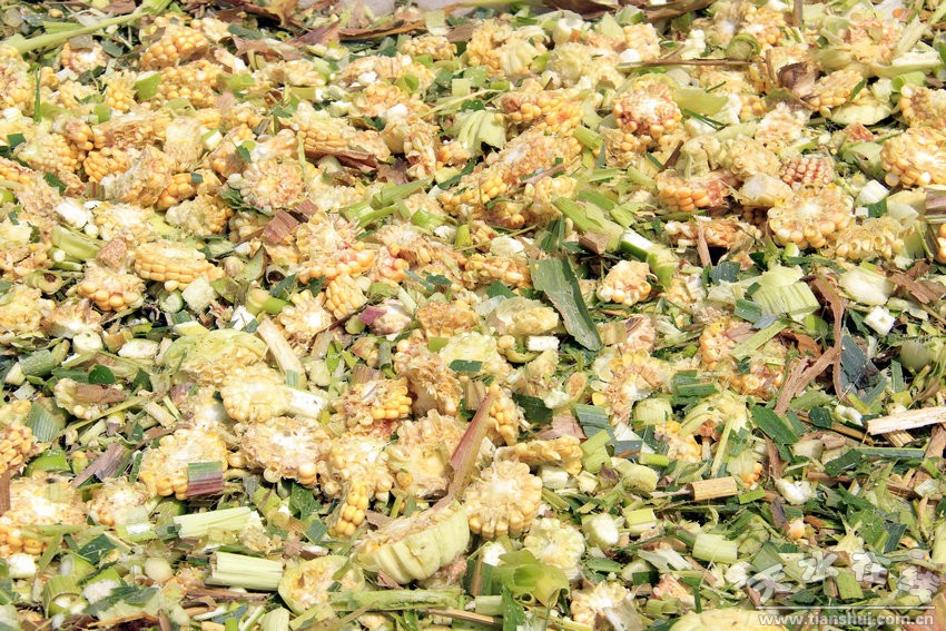 ▲帶包谷的玉米秸稈青貯后更富營(yíng)養(yǎng)價(jià)值