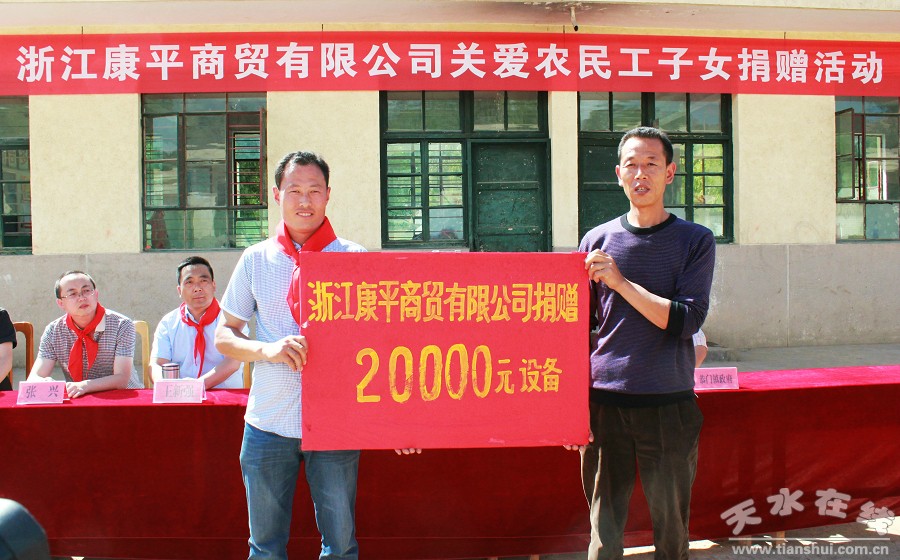 捐贈(zèng)儀式上,康平商貿(mào)有限公司總經(jīng)理付進(jìn)平先生委托付進(jìn)宏為付川小學(xué)送來(lái)了價(jià)值2萬(wàn)元的電腦6臺(tái)。付進(jìn)平是張家川縣付川村人,先后獲得天水市農(nóng)民工明星、甘肅省第五屆創(chuàng)業(yè)帶頭人榮譽(yù)。