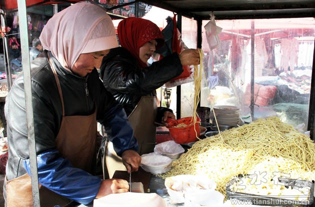 2月17日,筆者走進(jìn)張家川縣龍山鎮(zhèn)。這一天正值龍山鎮(zhèn)周邊十里八鄉(xiāng)的群眾前來(lái)趕集。熙熙攘攘的人群,沸沸騰騰的集市,加上味美價(jià)廉的回族小吃,讓節(jié)日期間的龍山鎮(zhèn)顯得格外熱鬧。