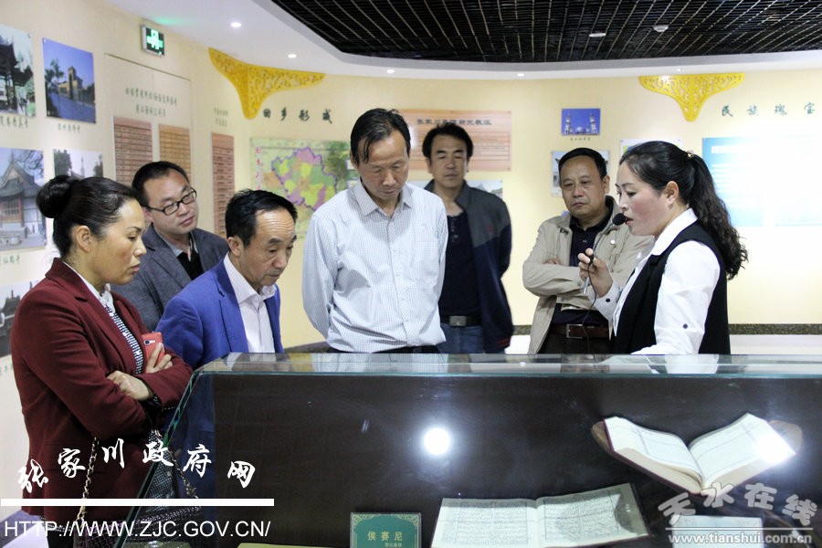 張家川縣展覽館分為序廳、歷史展區(qū)、民族民俗展區(qū)、發(fā)展成就展區(qū)、未來展望展區(qū)和留言廳六大部分,集中反映了自治縣60多年來在歷屆縣委、縣政府的領導下,回漢兒女艱苦奮斗所取得了巨大成就。張篤志一行在此詳細了解了張家川的風土人情,馬家塬戰(zhàn)國古墓遺址及墓群考古與挖掘、“三大富民”產業(yè)發(fā)展、關山草原旅游開發(fā)與保護等有關情況,對張家川自覺主動推動文化大發(fā)展大繁榮的舉措表示贊賞。