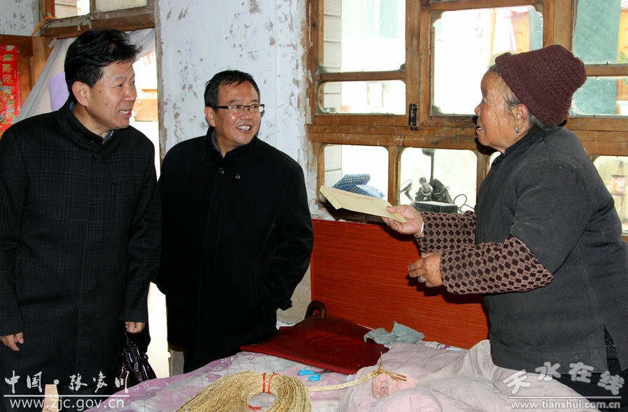 六組聯(lián)系戶汪寬平,全家有8口人,兩個(gè)兒子外出打工,自己和老伴兒在家。2013年,借助危房改造資金,家里蓋起了7間新磚房。同時(shí),在聯(lián)系領(lǐng)導(dǎo)和鎮(zhèn)村干部的指導(dǎo)幫扶下,如今養(yǎng)著1000多只雞,年收入3萬(wàn)多元,一家人的生活幸福而充實(shí)。市領(lǐng)導(dǎo)來(lái)到汪寬平家,關(guān)切地詢問(wèn)家庭生產(chǎn)生活情況。在了解聯(lián)系戶收入情況后,張明泰很欣慰。他說(shuō),“從你家目前的情況看,全家人致富的勁頭很足。好好搞養(yǎng)殖,今后的日子會(huì)越過(guò)越紅火!弊咴L中,張明泰還看望慰問(wèn)了汪寬平年邁的母親,囑咐老人要保重好身體,健康地安享晚年生活。