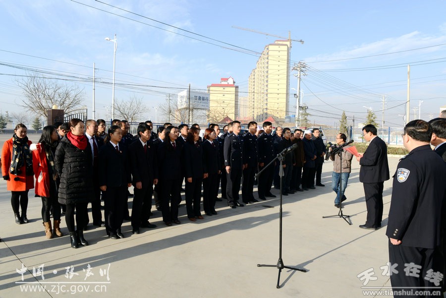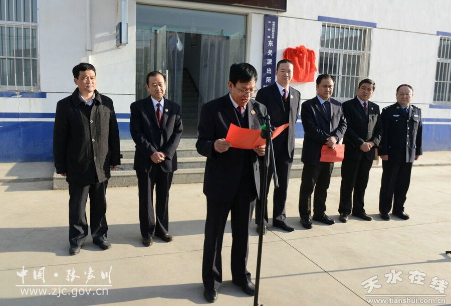 12月7日上午,張家川縣人民檢察院在縣公安局東關(guān)派出所院內(nèi)舉行派駐張家川鎮(zhèn)檢察室揭牌儀式。揭牌儀式由縣檢察院黨組書記、檢察長邵新建主持。中共張家川縣委書記陳晰,市檢察院黨組成員、副檢察長田彬,縣委常委、政法委書記高建平,市檢察院刑事執(zhí)行檢察局局長吳建奎,縣法院院長黎平生,縣公安局長杜軍,縣司法局長趙俊偉,部分省、市、縣人大代表、政協(xié)委員,縣公安局東關(guān)派出所和縣檢察院全體干警參加揭牌儀式。