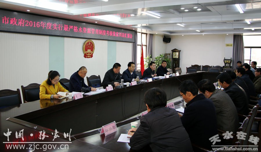 在隨后召開的匯報會上,考核組對張家川縣2016年度實行最嚴格水資源管理制度取得的成績給予了充分肯定,并對下一步工作提出意見和建議?己私M要求,張家川要一如既往的高度重視實行最嚴格水資源管理制度,堅持把最嚴格水資源管理制度落到實處,重點推進落實好水資源保護管理等工作;要不斷加強領(lǐng)導(dǎo),強化部門協(xié)作,把節(jié)約用水貫穿于經(jīng)濟社會發(fā)展和生態(tài)文明建設(shè)全過程,努力推進機關(guān)、單位、企業(yè)節(jié)約用水、提高效率;要加大對水功能區(qū)保護和治理力度,加強水資源管理監(jiān)測、統(tǒng)計、計量設(shè)施等能力建設(shè);要加強水資源的動態(tài)管理,從人員、設(shè)備、技術(shù)培訓(xùn)等方面充實水資源管理能力建設(shè),把水資源管理工作切實抓緊抓好,抓出成效,更好地服務(wù)全縣經(jīng)濟社會發(fā)展和廣大群眾。