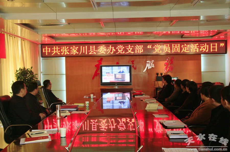 張家川縣委辦黨支部在開(kāi)展4月份“黨員固定活動(dòng)日”活動(dòng)時(shí),集體學(xué)習(xí)中共中央關(guān)于印發(fā)《中國(guó)共產(chǎn)黨工作機(jī)關(guān)條例(試行)》的通知和中共中央辦公廳印發(fā)《關(guān)于推進(jìn)“兩學(xué)一做”學(xué)習(xí)教育常態(tài)化制度化的意見(jiàn)》,觀看“百家講壇”欄目《黨史故事100講》建黨篇第一講(五四運(yùn)動(dòng)喚醒民眾)。縣委書(shū)記陳晰參加了支部“黨員固定活動(dòng)日”活動(dòng)。